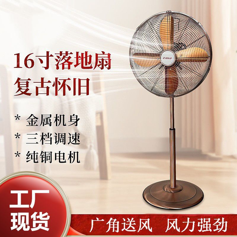 電動ファン レトロ ノスタルジック オフィス ホーム リビングルーム フロアファン アンティーク ヨーロピアンスタイル 16inch メタル レトロトレンド