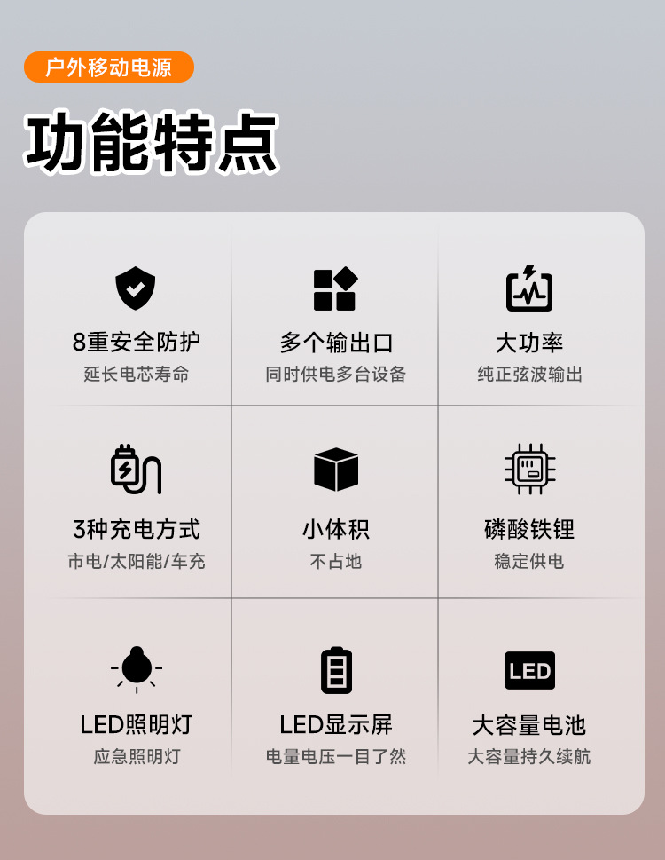 220V户外移动电源便携摆摊自驾游充电大功率大容量野外电源