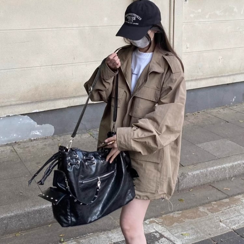 2025 夏の新ファッション多用途ニッチハイエンド巾着オートバイスタイル大容量クロスボディショルダートートバッグ