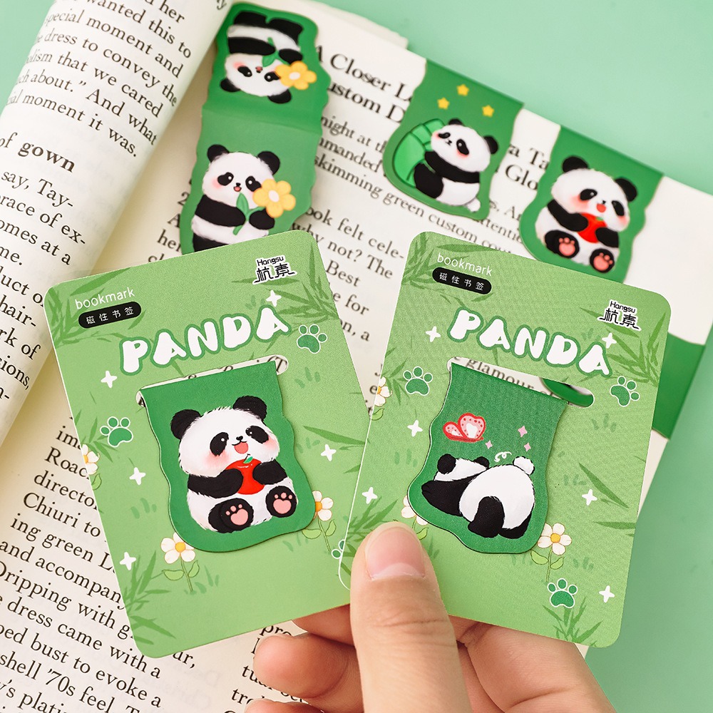 かわいいパンダの磁気のしおりの学生の創意は本のページを読みます。