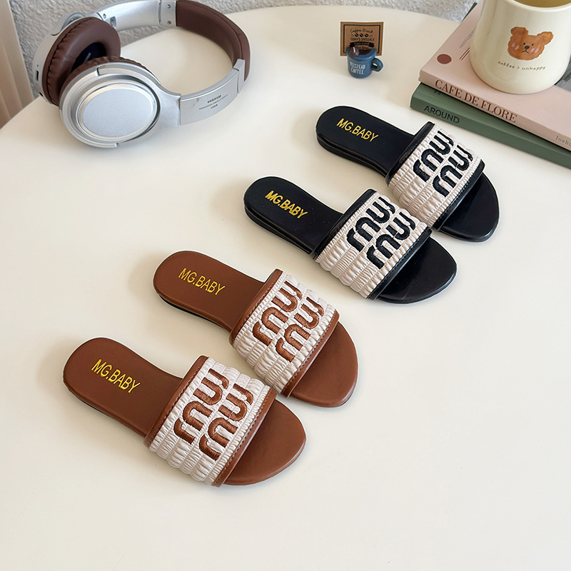 女の子の角ボタンの頭のスリッパ2025年夏の新型の女の子の柔らかい底のカジュアルな外は王女の冷たいスリッパの潮を着ます。