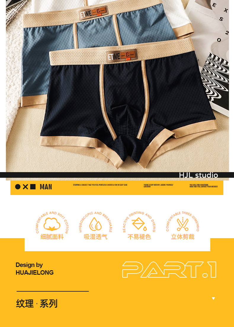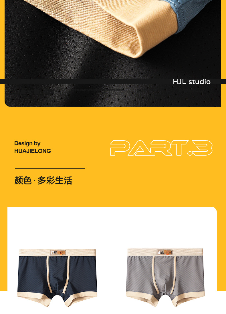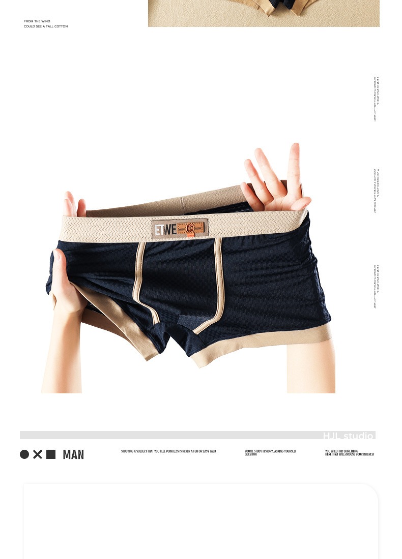 WJ/网将男士内裤欧美夏季低腰冰丝网孔纯棉裆透气平角男生