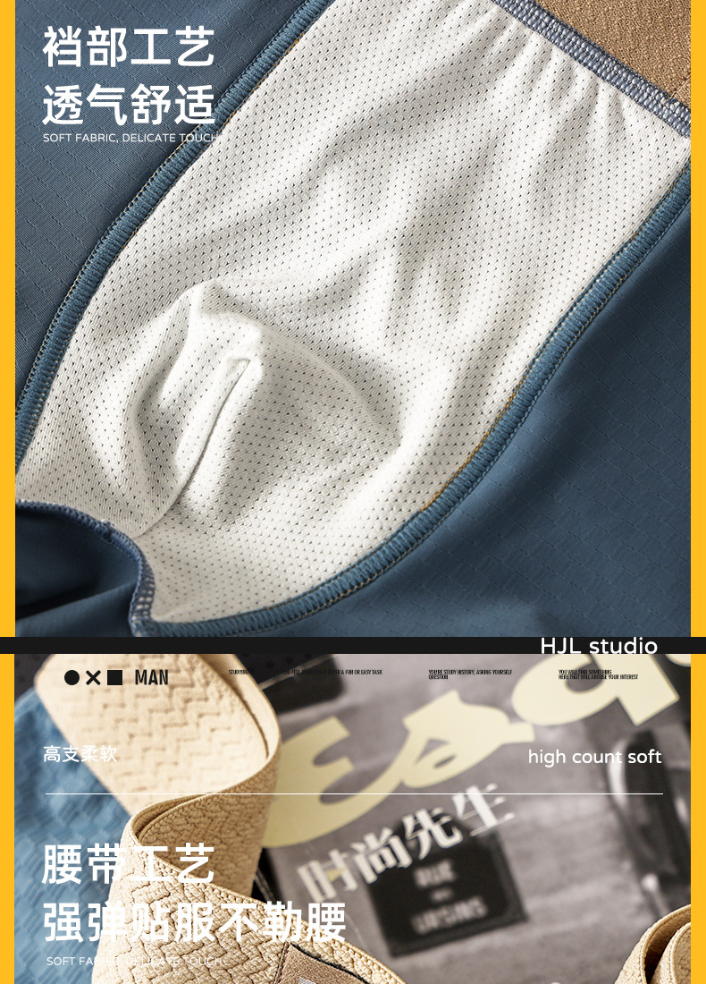 GTOPX网红款男士可拆开合低腰冰丝平角内裤 抖音代发阿罗裤家居裤