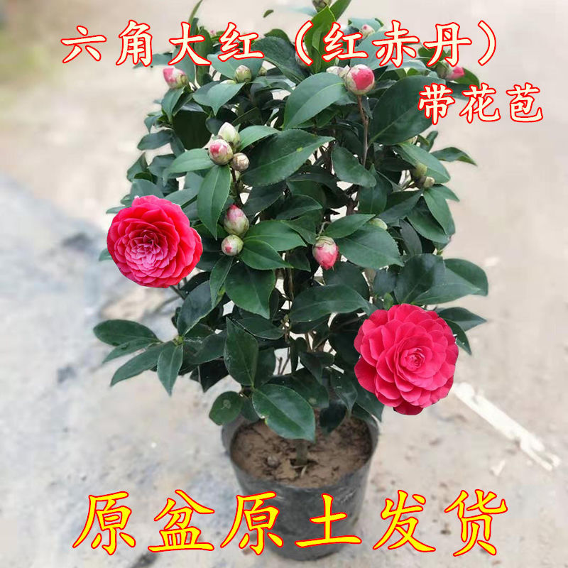 椿の苗木、耐寒性椿の鉢植え、貴重な花、屋内四季常緑植物、冬咲きの正月花