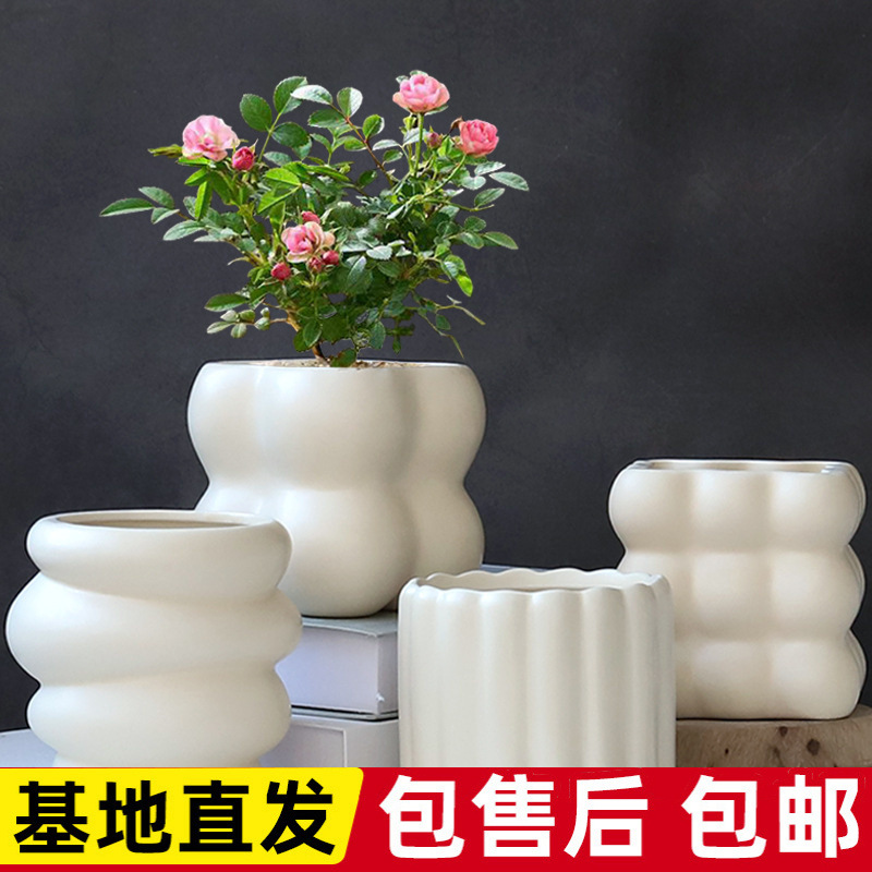 奶油风陶瓷花盆植物家用盆栽精致白色ins轻奢创意兰花多肉绿植盆