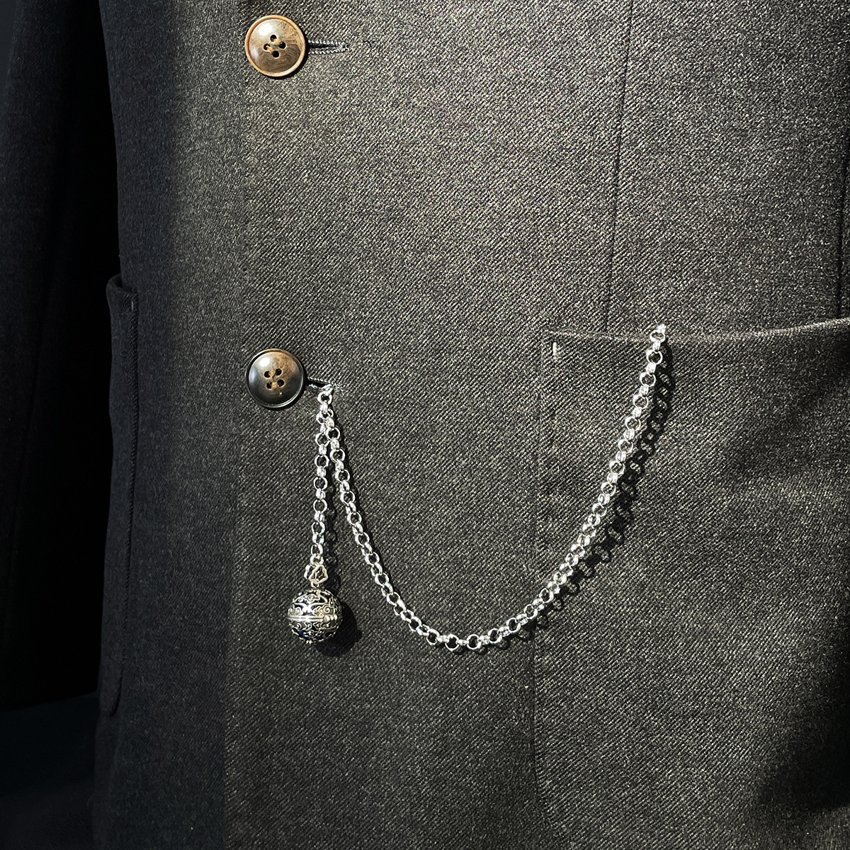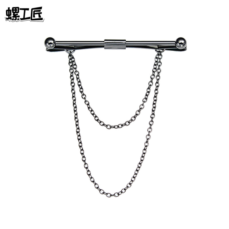 日韓流蘇襟チェーンアクセサリー英倫馬甲チェーン高級蛇紋チェーンブローチ男金属盾潮流バッジ