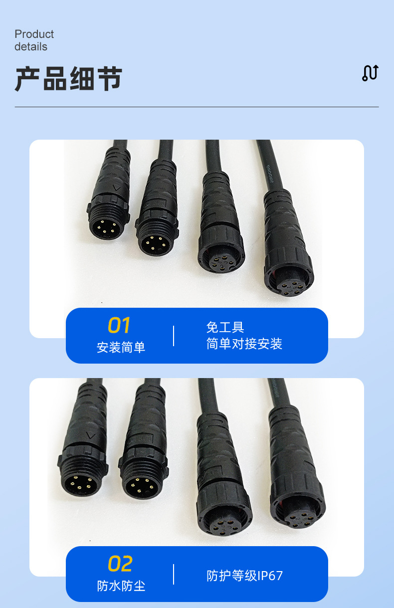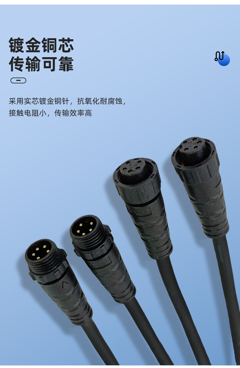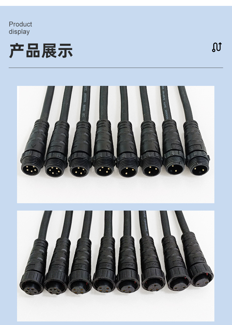 M12 防水コネクタ 2345 コアネジ付きオスとメスの防水コネクタ電源防水ケーブル低煙フリーハロゲンフリー線