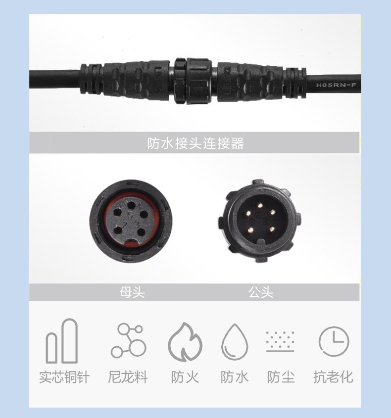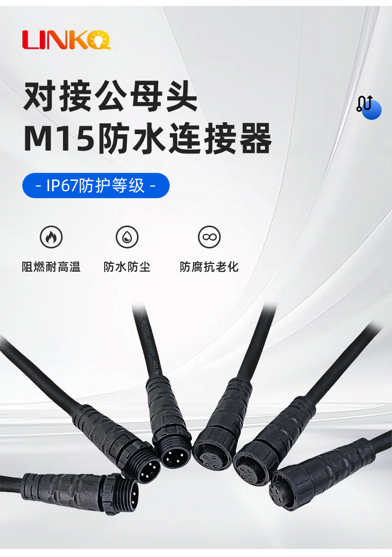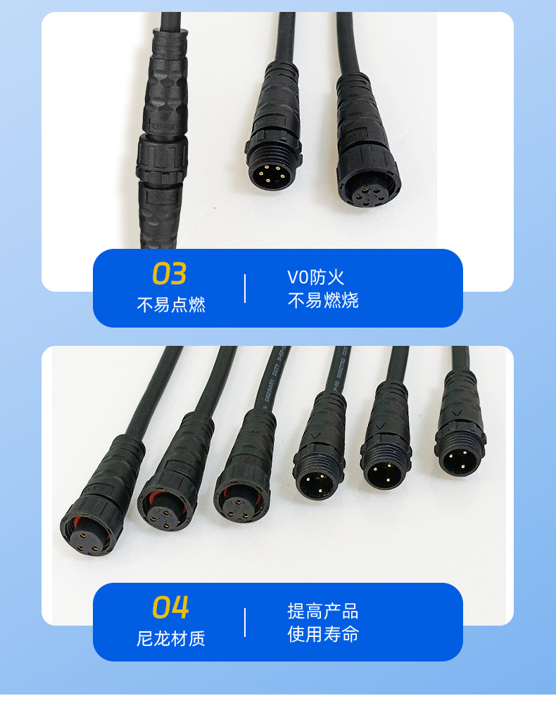 メーカー直販 M15防水コネクタ 2345ピンネジ式オス・メス防水接続部品 電源コード 低煙ハロゲンフリー