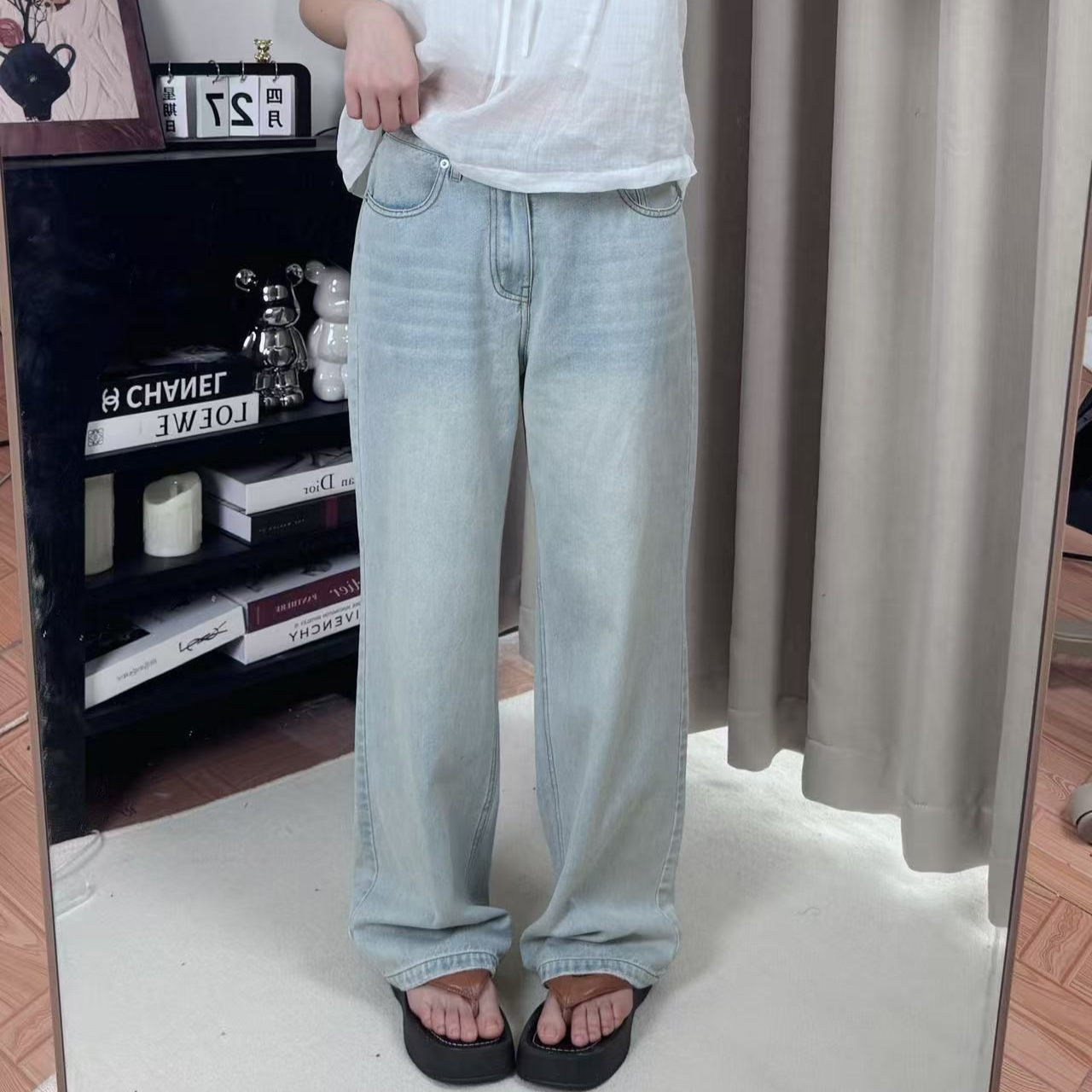 オタク女子同風 25s フレンチストレートウォッシュライトブルーデニムパンツ