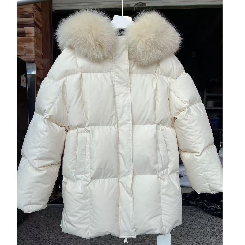モスクワの冬新標90白鴨毛狐毛襟ダウンジャケット