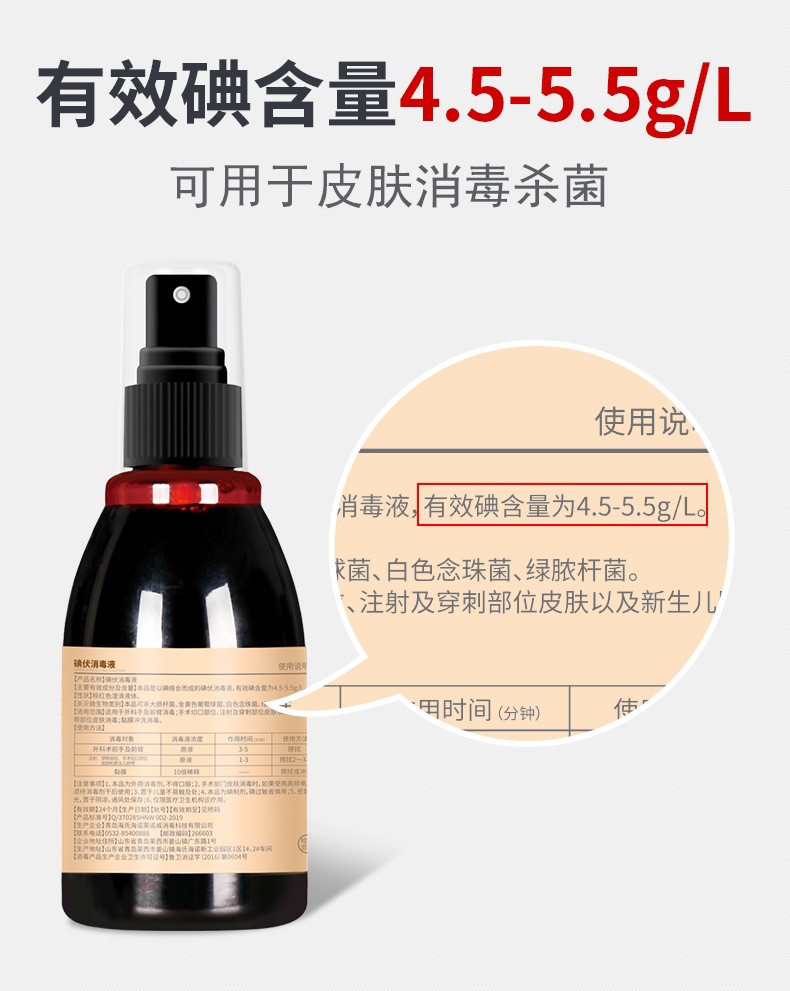 有効ヨウ素含有量は4.5~5.5g/Lです。