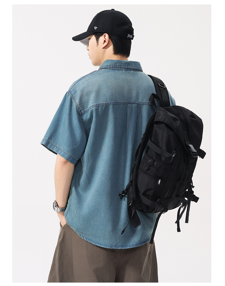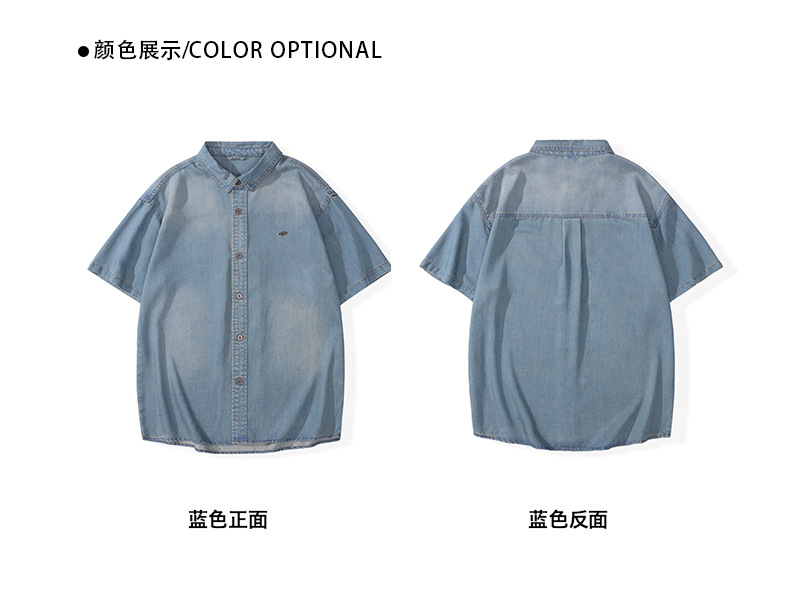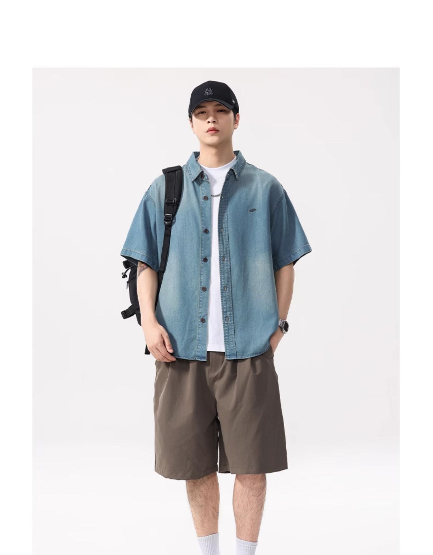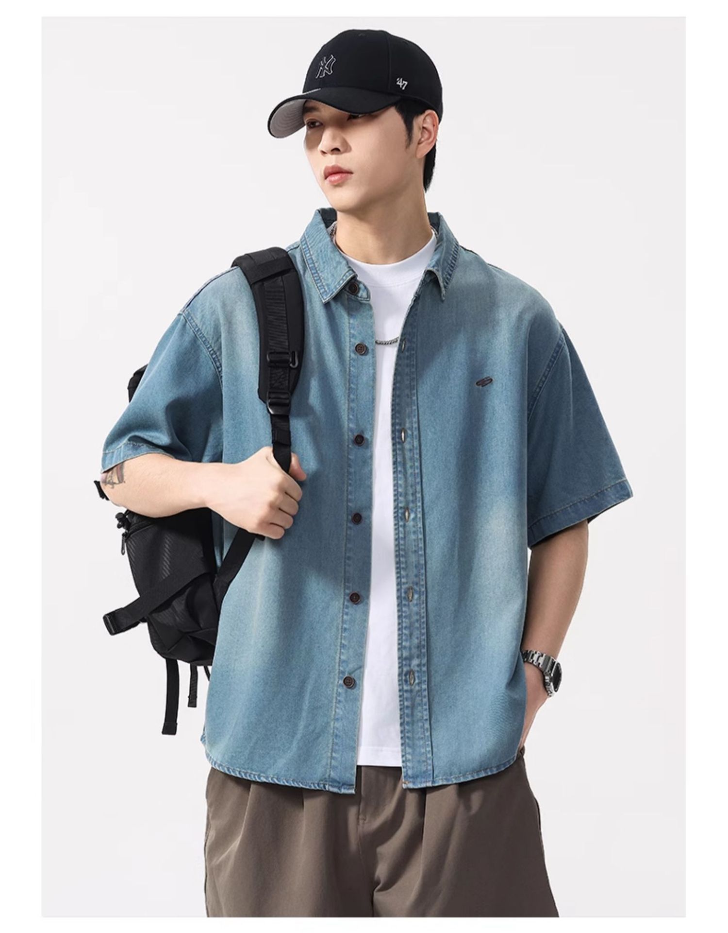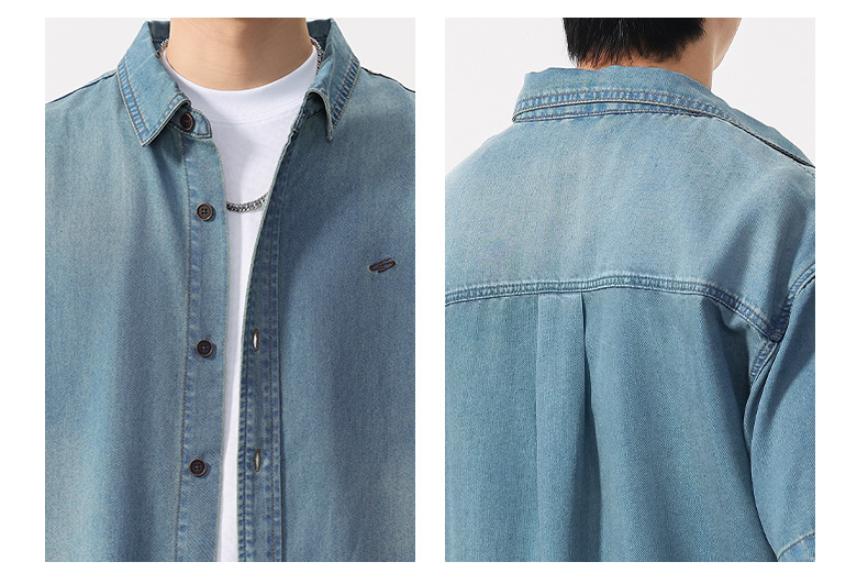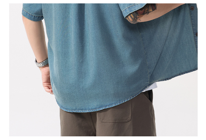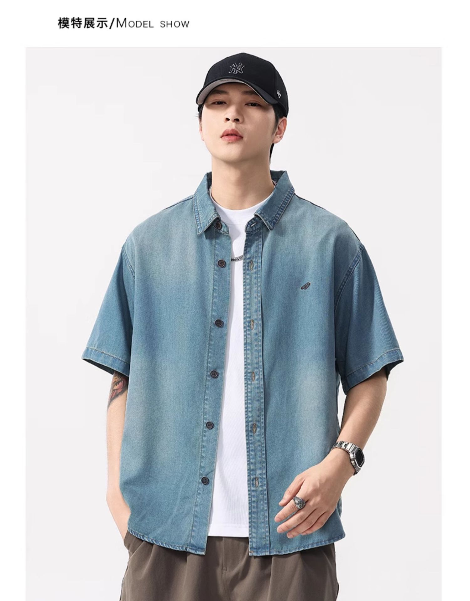 メンズリヨセルデニムシャツメンズ半袖夏のトレンディなブランド2025新しい半袖シャツジャケットルーズで多用途