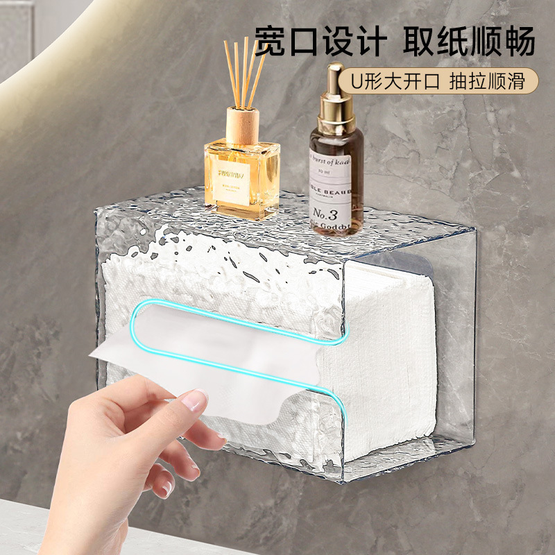 軽くて豪華な水の波紋壁掛けティッシュボックス、透明で厚みがあり、逆さに掛けることができるティッシュボックス、多機能パンチフリー収納ラック