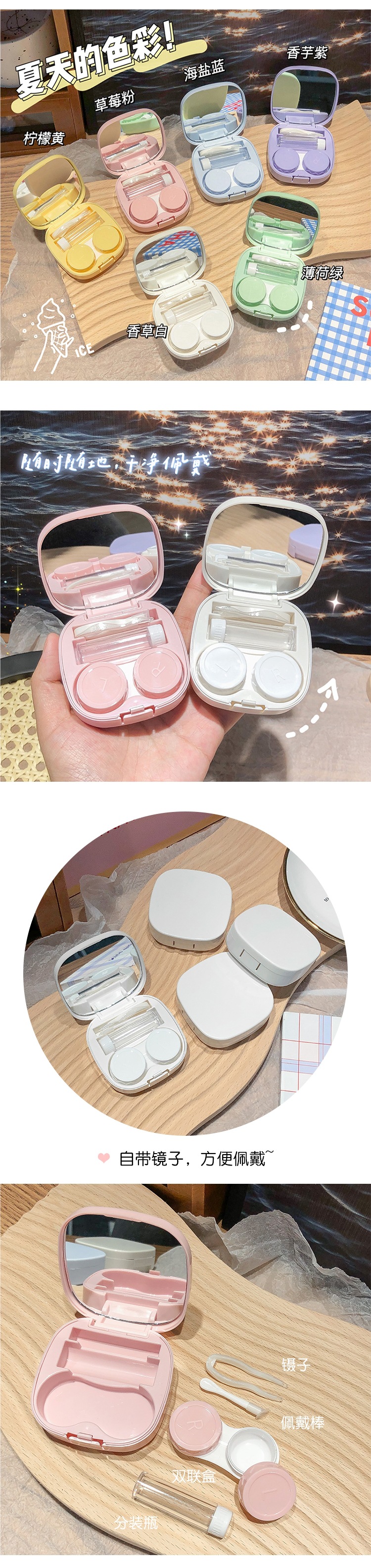 Insマカロンコンタクトレンズ収納ケースシンプル携帯鏡付きカップルケース女子学生看護美瞳ケース
