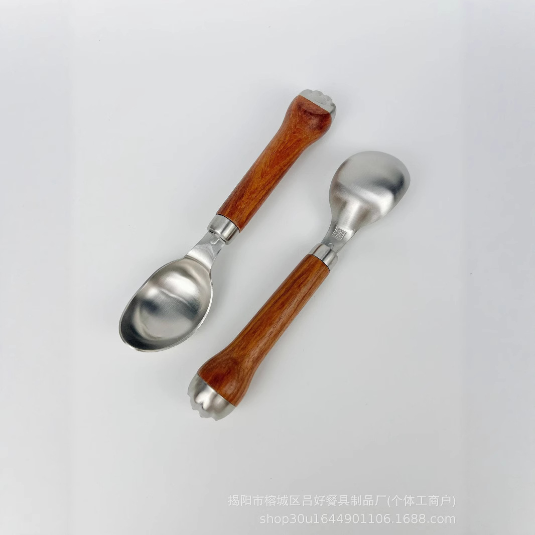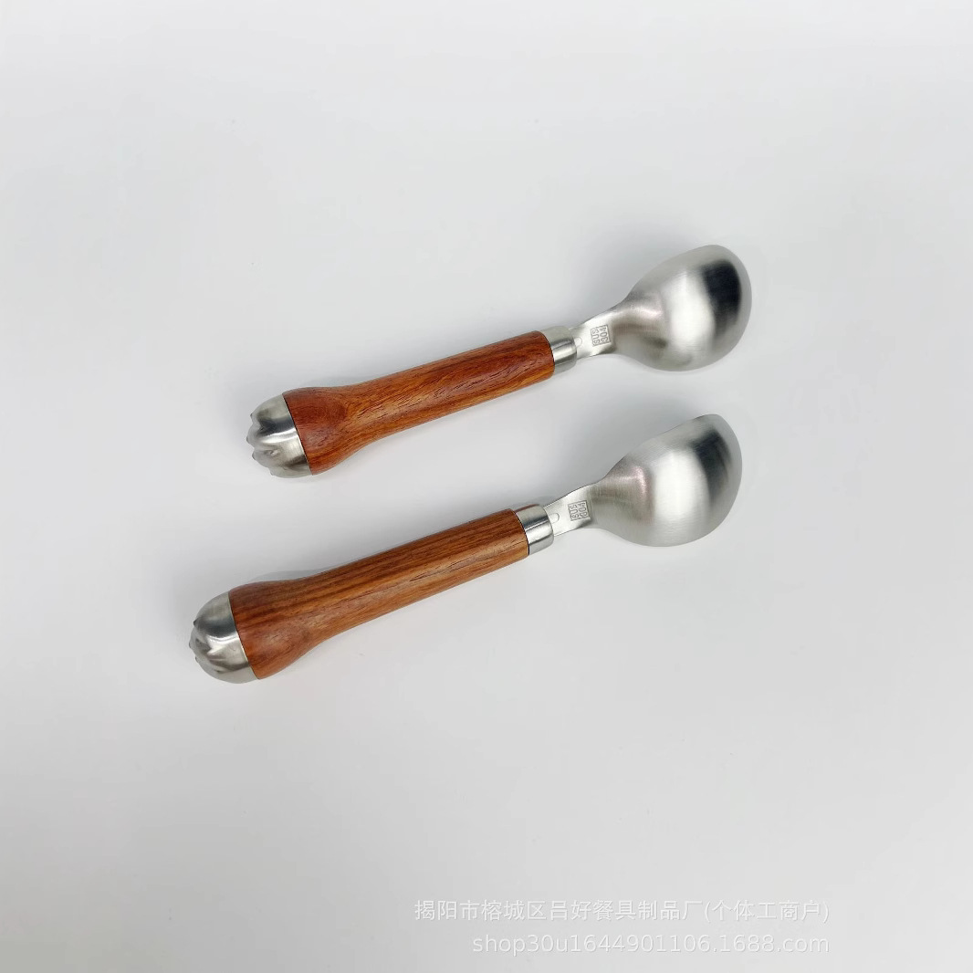 現物304ステンレスアイスクリームスプーン木柄アイスクリームスプーンミルクティー店商用果物スイカ掘削ボール神器