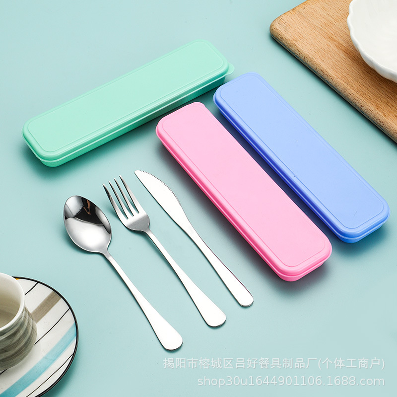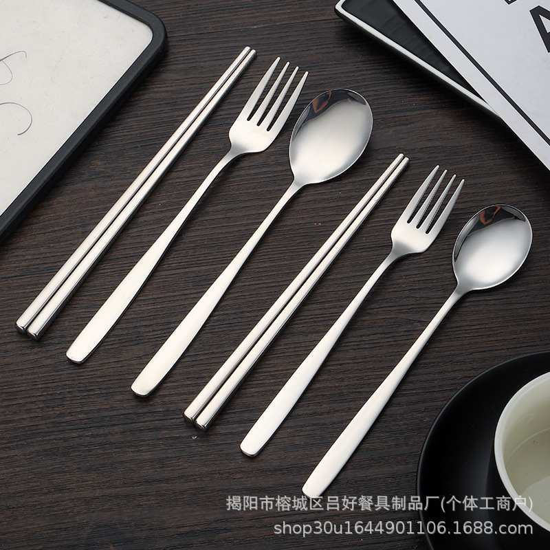 ステンレスの携帯食器ホテルのナイフとフォークのスプーンの3つのセットは簡単です。