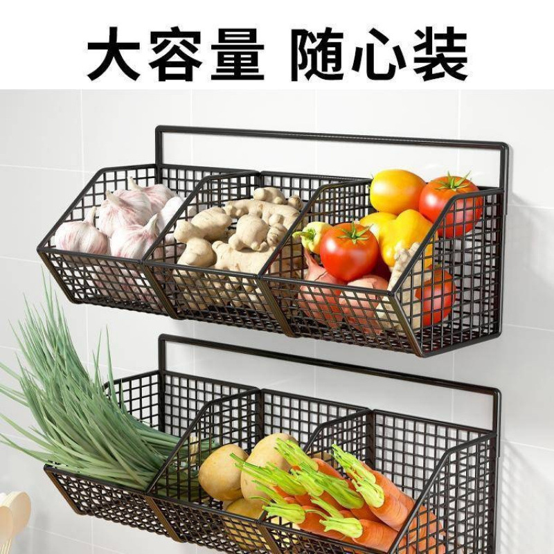 ネギのショウガのニンニクはかごの台所の物置棚の野菜のかごのショウガのニンニクを収納してかごの壁を掛けます。
