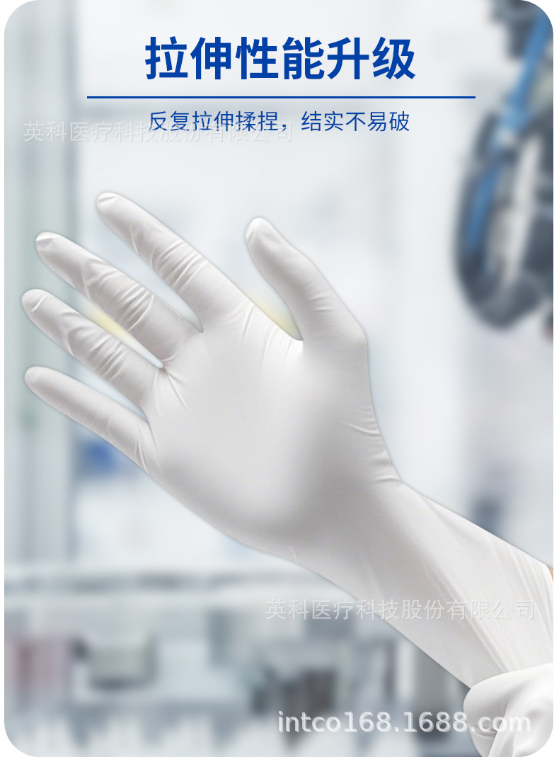 批发英科医疗一次性丁腈手套丁晴橡胶实验高弹耐磨无粉标准手套