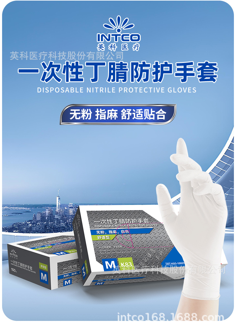 英科一次性医用丁腈手套丁晴睛橡胶诊所防滑耐用检查牙科盒装批发