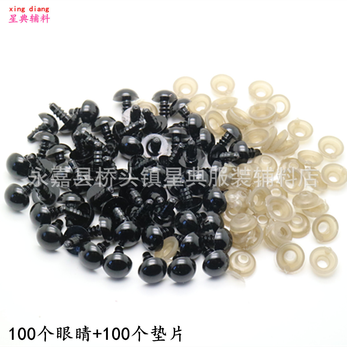 袋入りdiy人形目ぬいぐるみ目アクセサリー全黒目一包100個 + 100個スペーサー