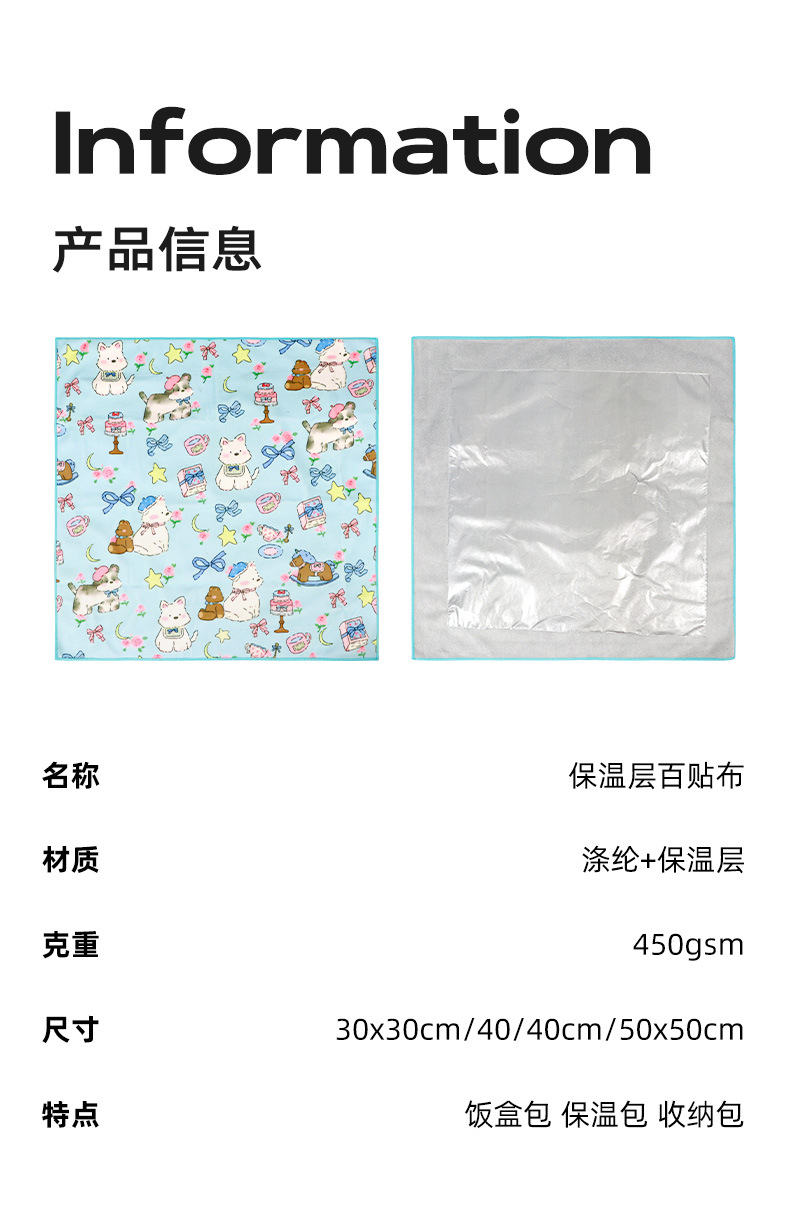 アルミフィルム断熱布、錫箔粘着布、ベルクロ、飲料弁当保存ラップ、粘着布カスタマイズ