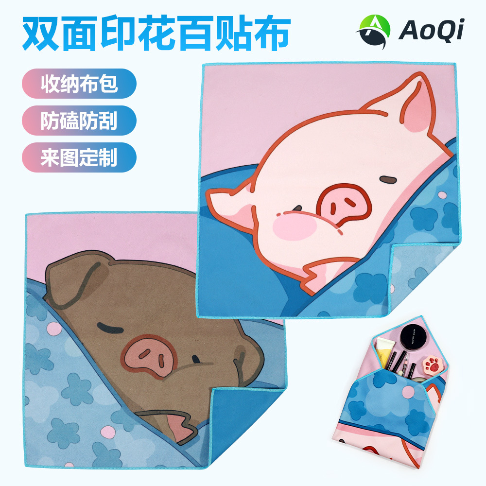 双面印花百贴布定制 化妆品 相机收纳布 百折布 魔术布裹猫自粘布