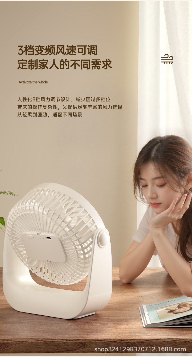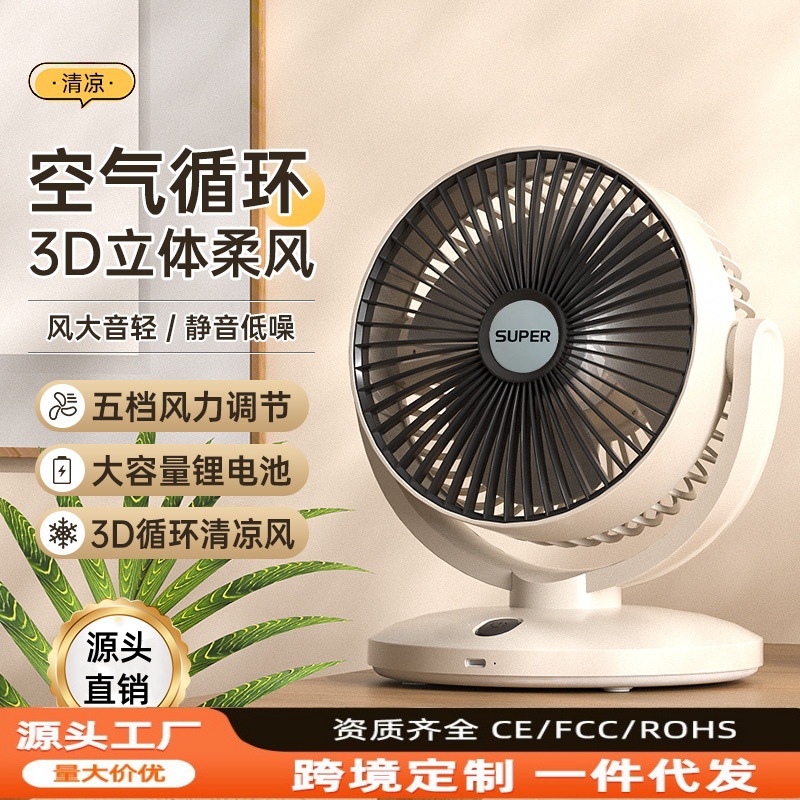 新款桌面风扇空气循环风扇静音办公室学生小风扇USB台式充电风扇