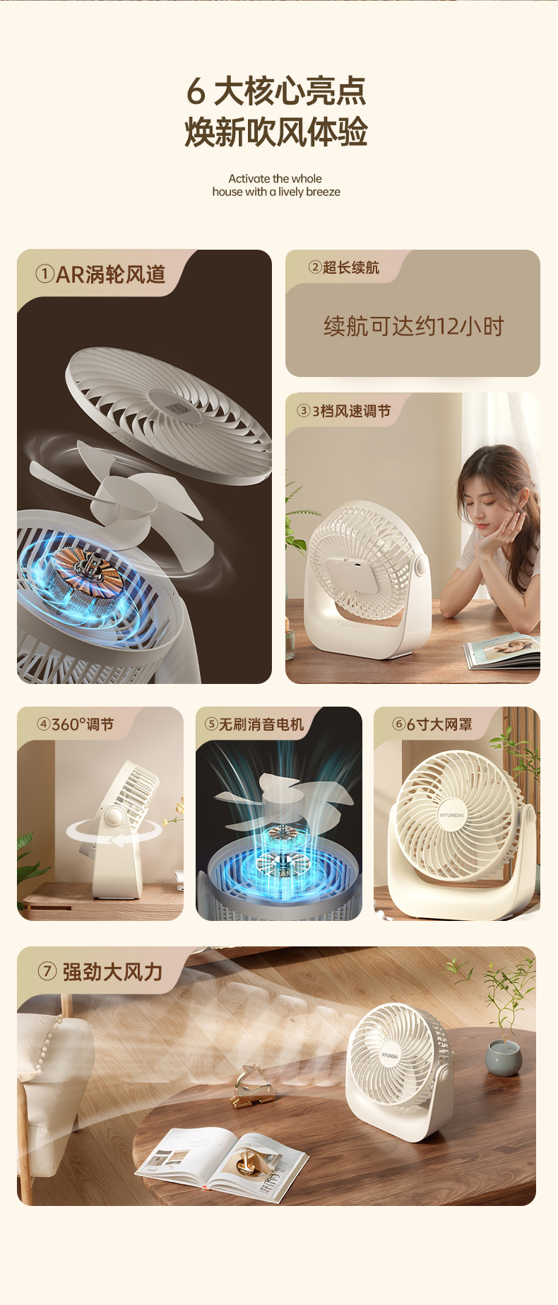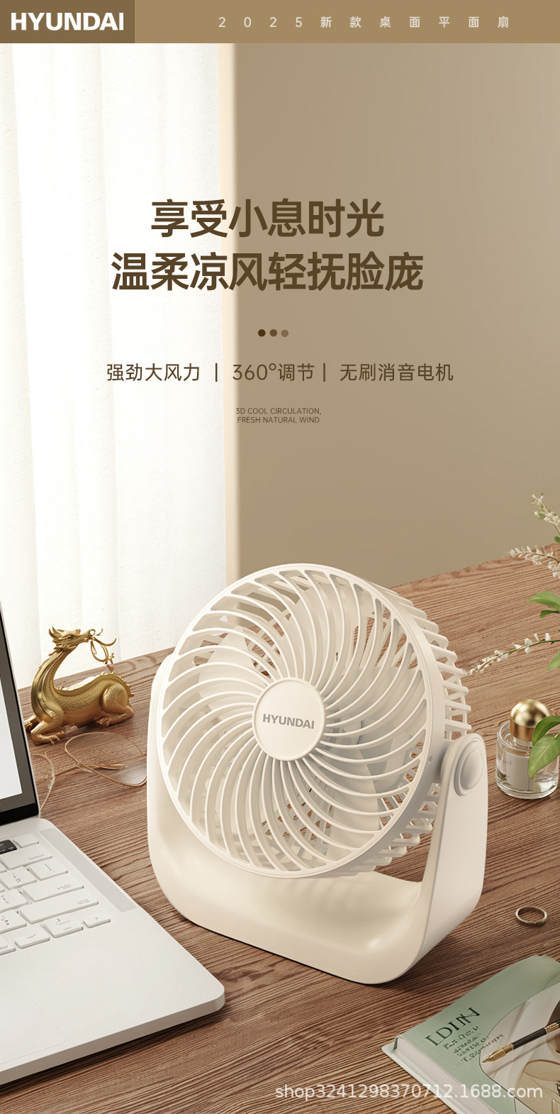 卸売りHUNDAI空気循環扇風機家庭用静音扇風機オフィスデスクトップ小型首振り扇風機