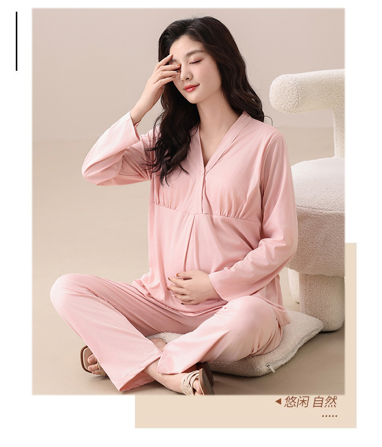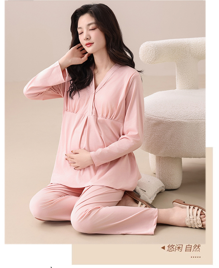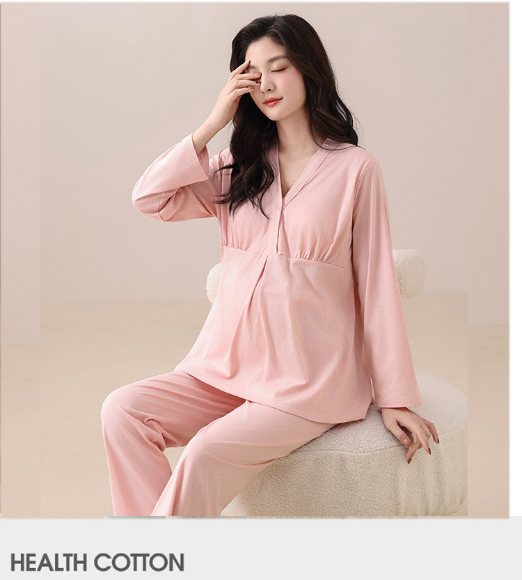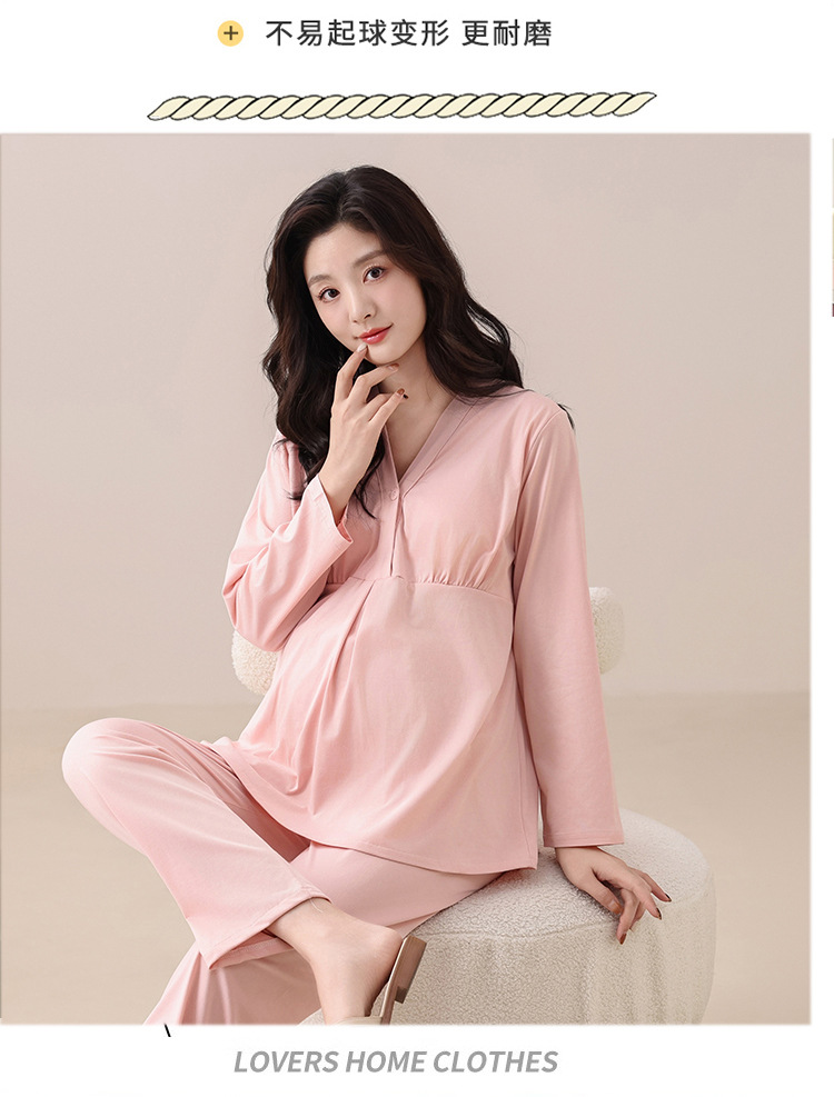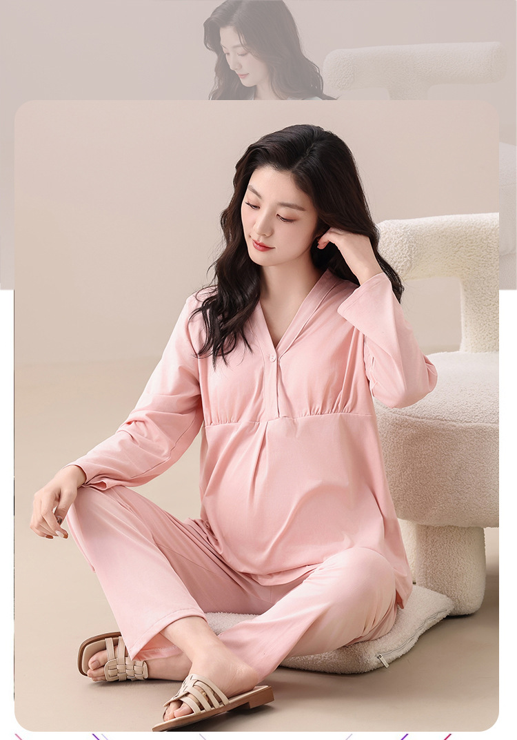 2025秋季新款跨境爆款【带胸垫】纯棉月子服孕妇长袖睡衣家居服