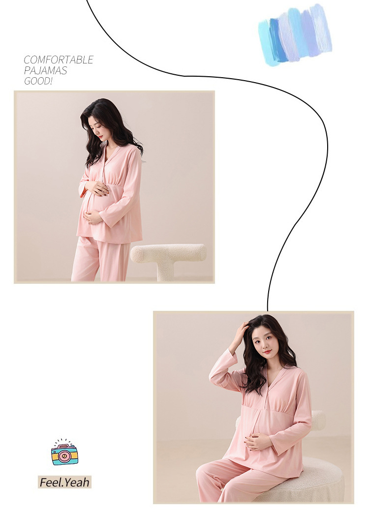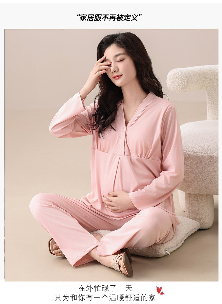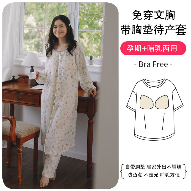 月子服出産待ち秋冬パジャマ長袖長ズボンプラスサイズ出産前妊婦胸パッド付きホームウェアセット