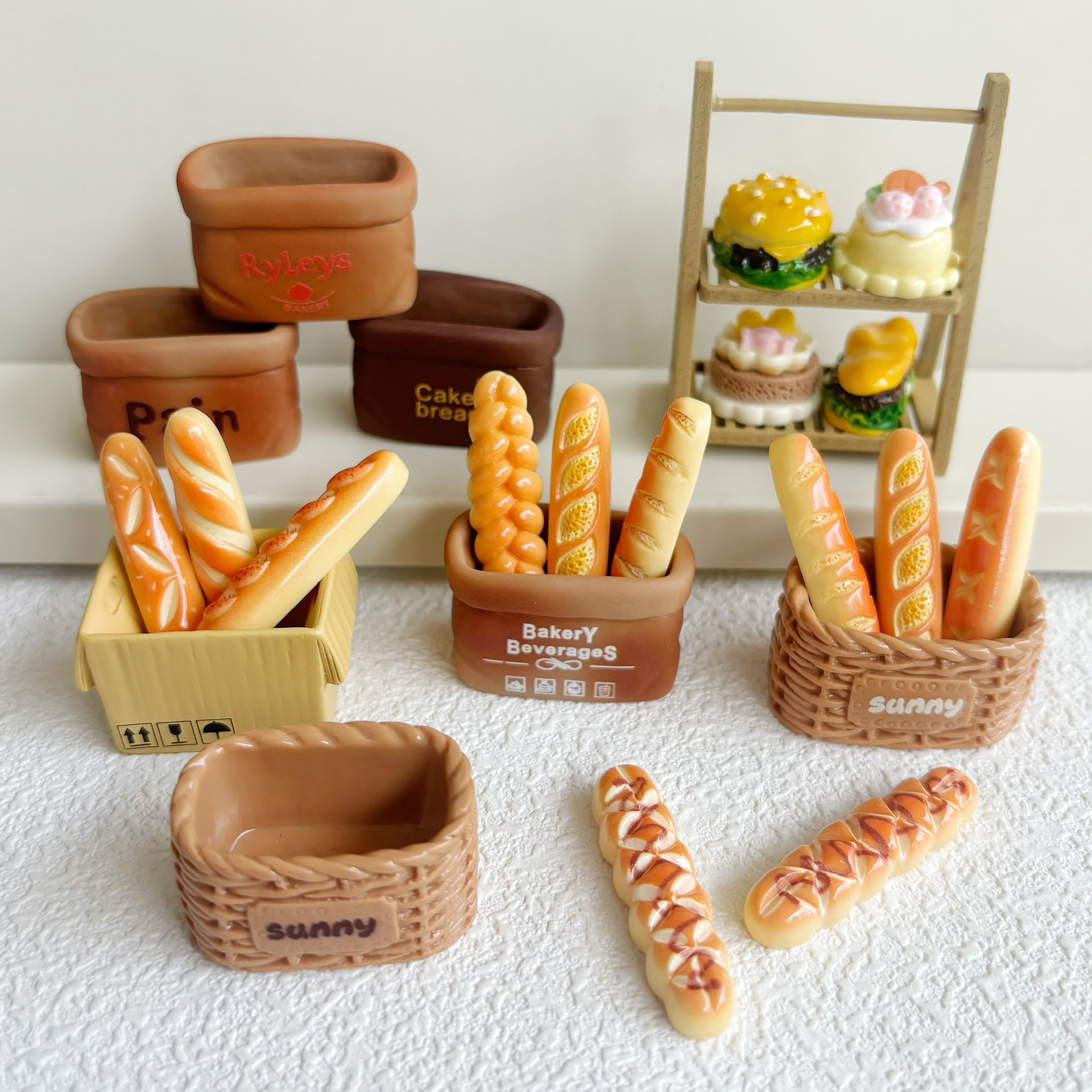 仿真草编竹篮面包筐法棍面包食玩奶油胶diy材料微景观娃娃屋摆件