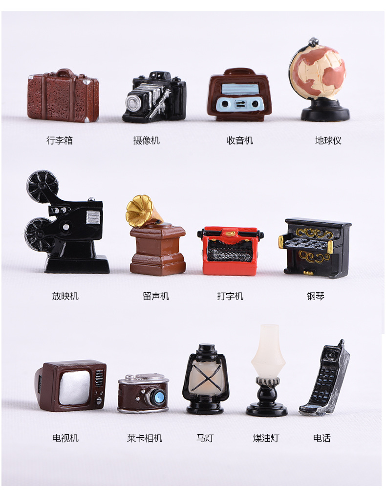 マイクロランドスケープレトロピアノカメラオーディオプロジェクションラジオホームリビングルーム装飾小道具装飾品