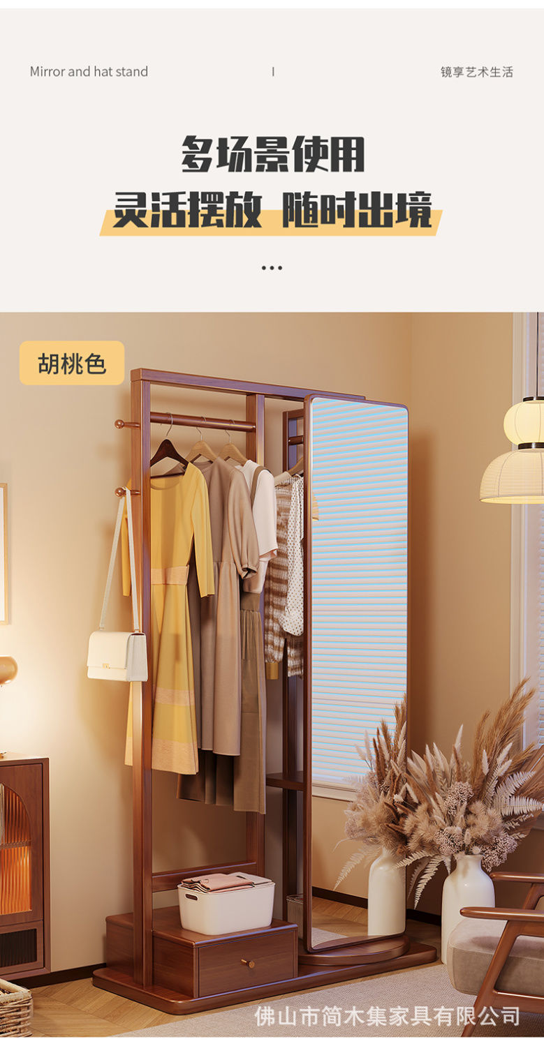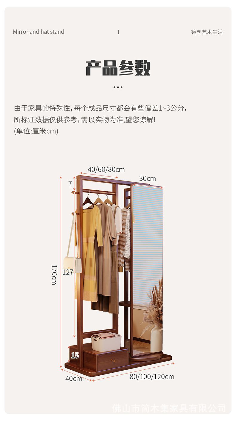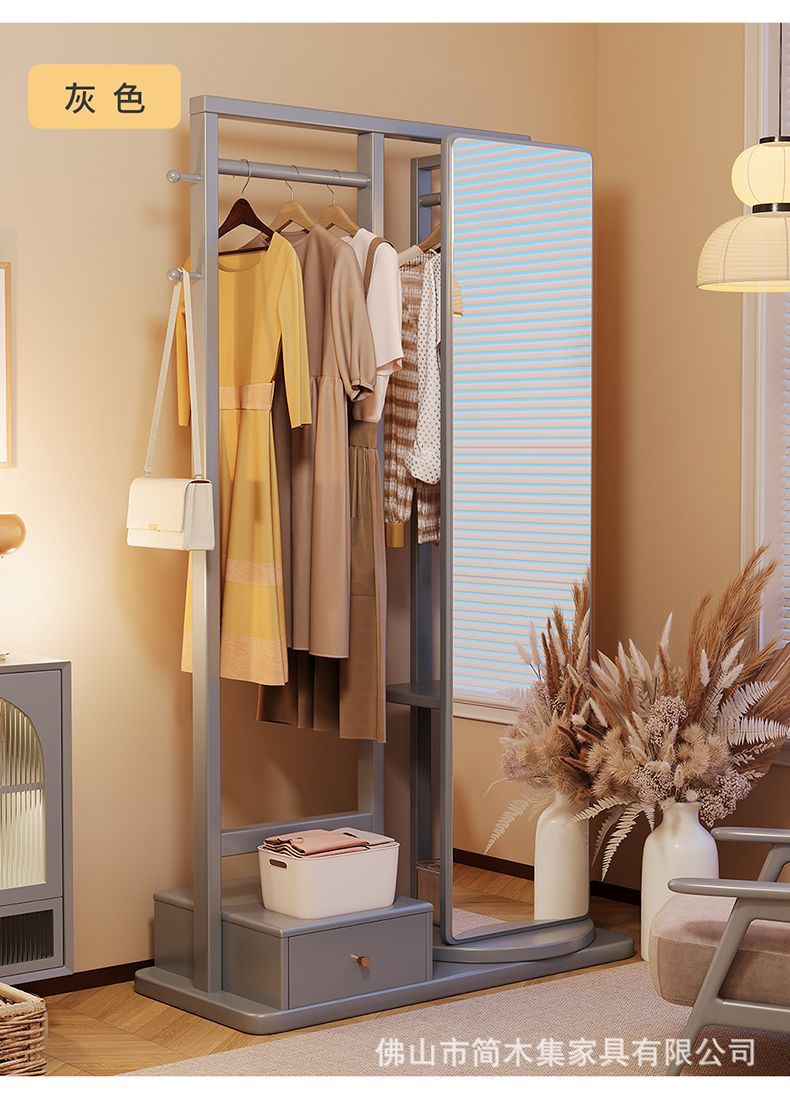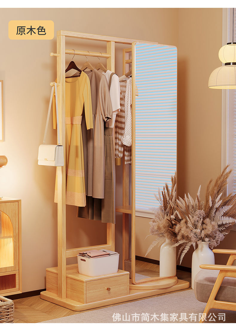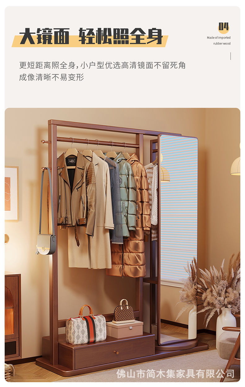 無垢材ドレッシングミラー、全身鏡、家庭用コートラック、寝室用ミラー、回転試着ミラー、洋服ラック、フロアミラー一体型
