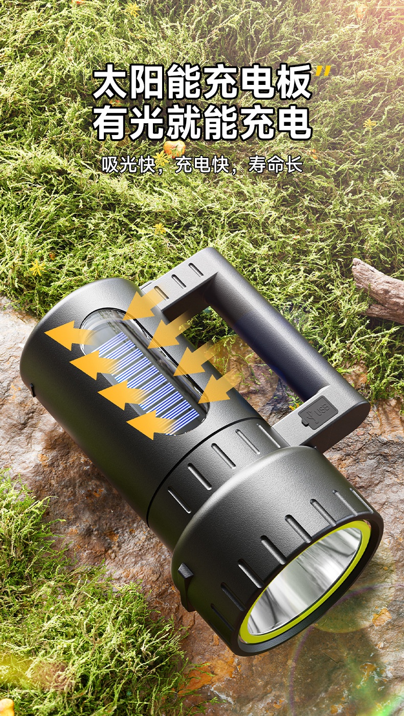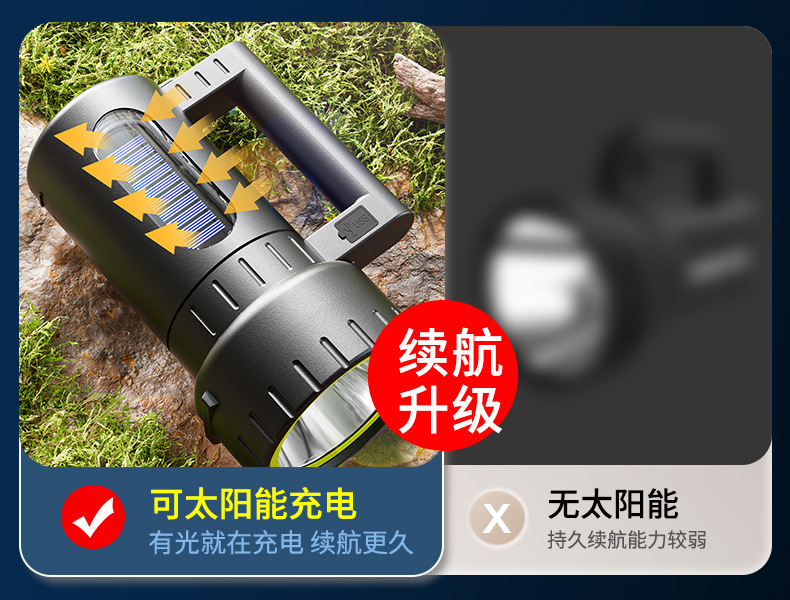 オックス懐中電灯強光屋外遠射超亮家庭用超長航続太陽エネルギー携帯式サーチライト