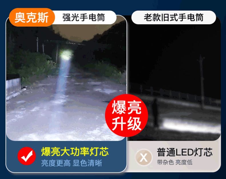 オックス懐中電灯強光充電超明るい屋外遠射携帯サーチライト家庭用鉱灯太陽エネルギーled