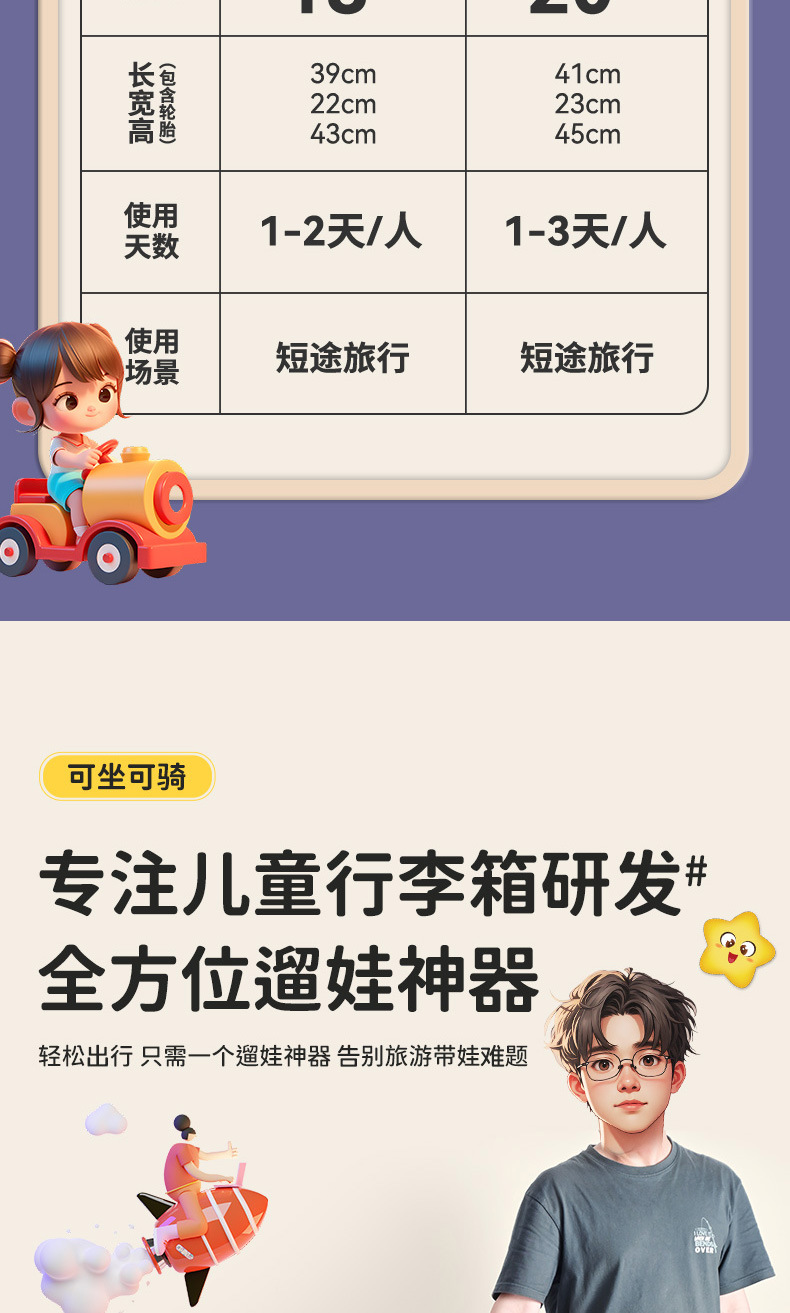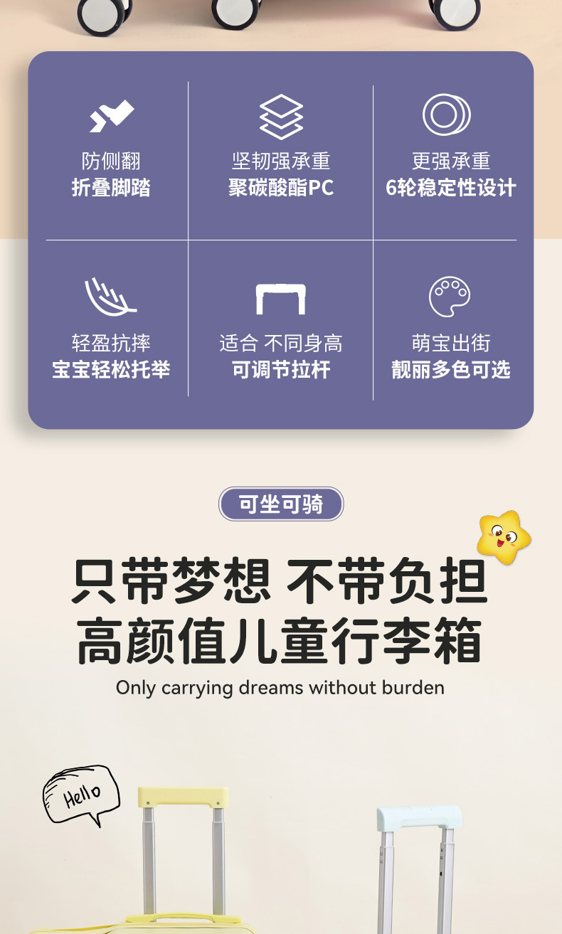 新款行李箱儿童可坐骑拉杆箱20寸密码登机箱万向六轮带娃旅行神器