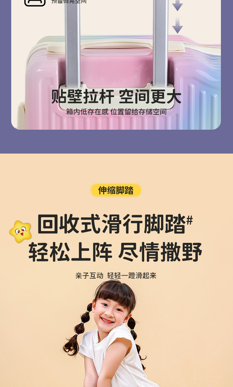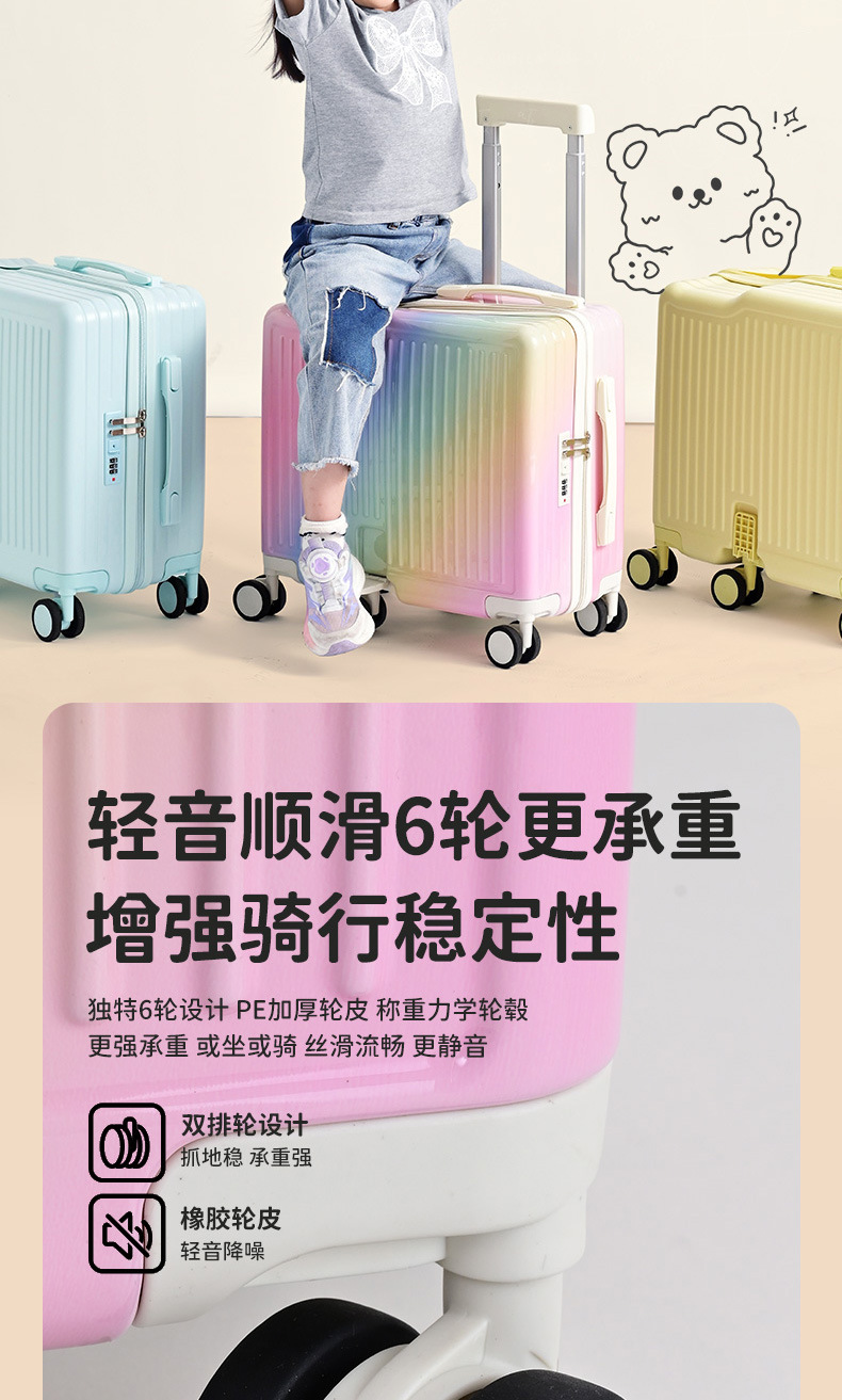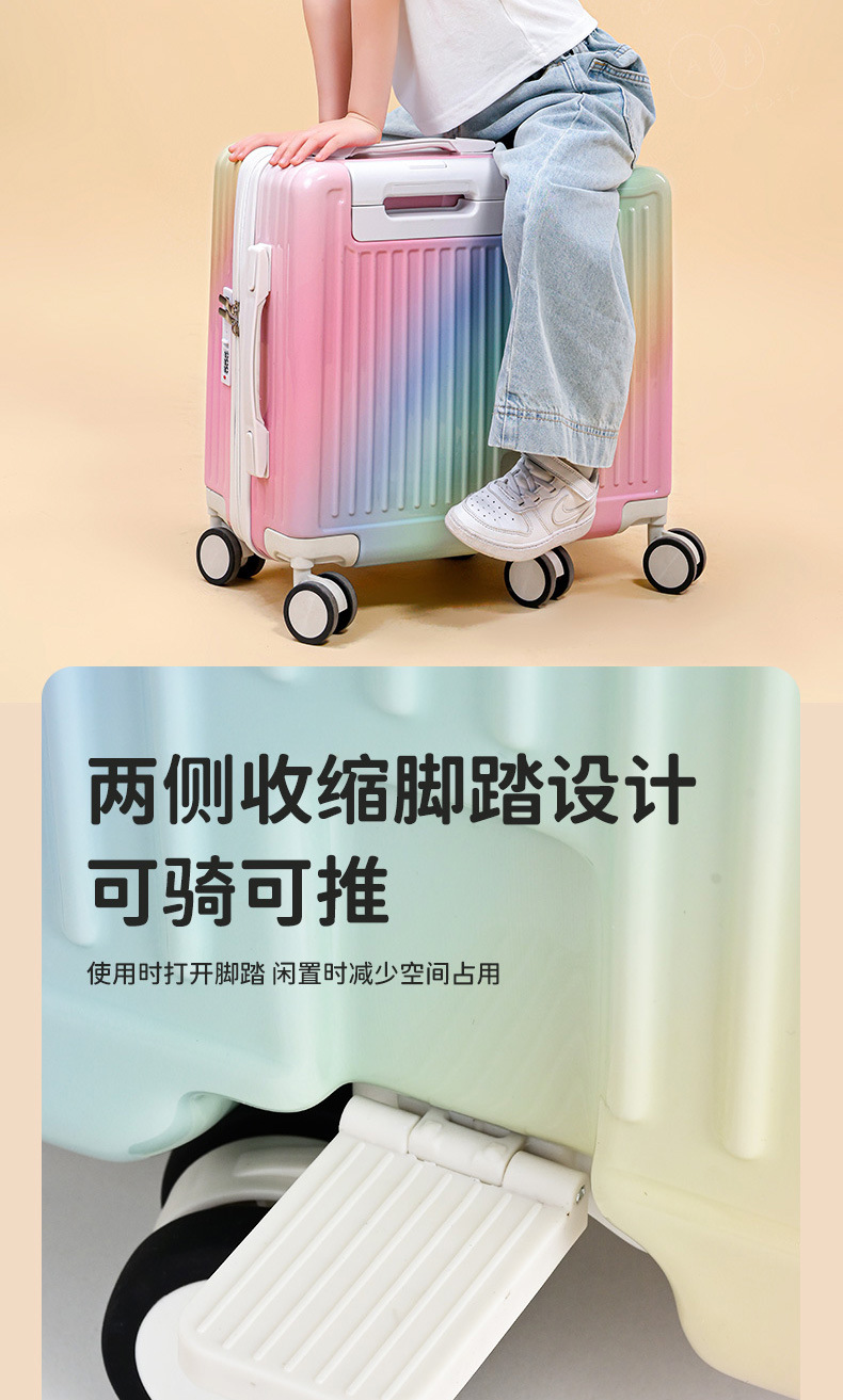 新款渐变儿童拉杆箱可坐骑旅行密码箱万向轮学生行李箱6轮加固