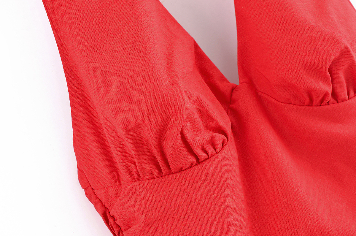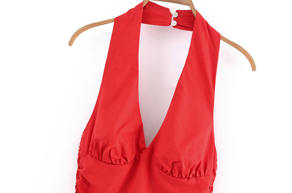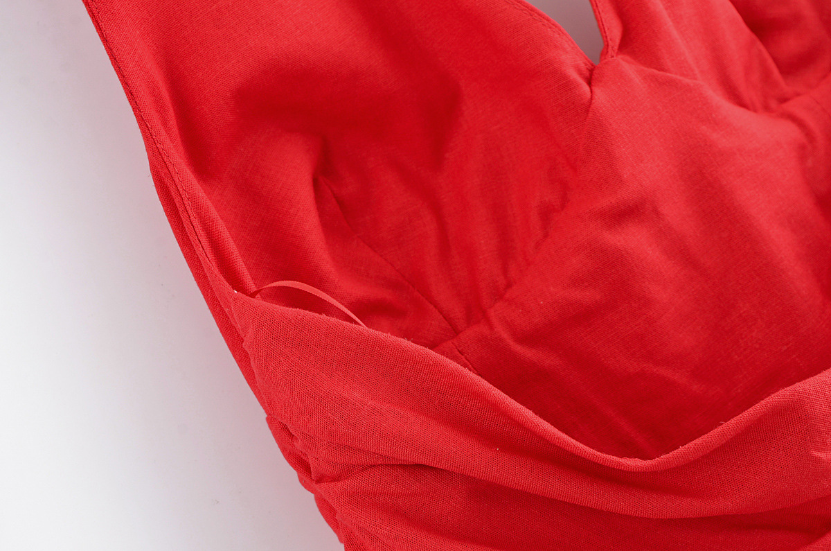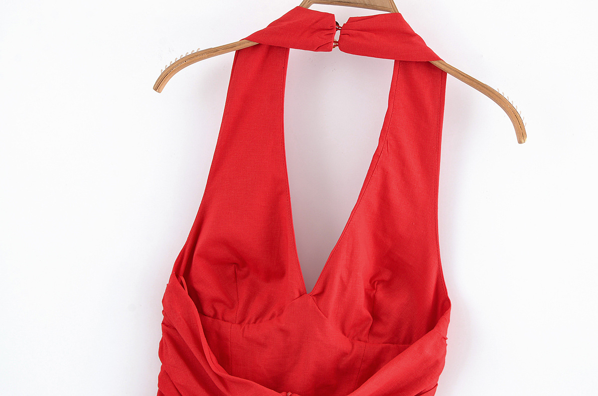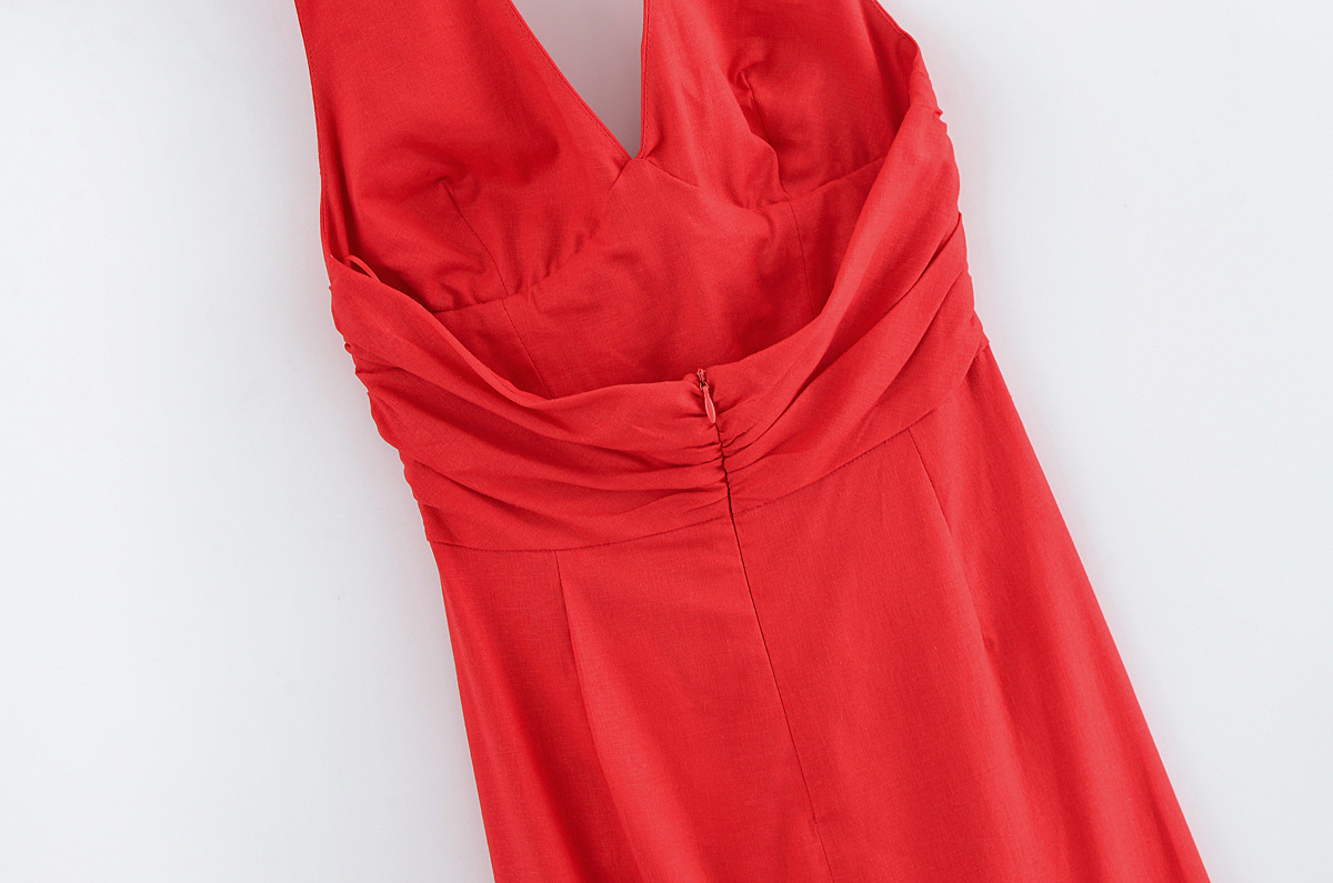 ヨーロッパとアメリカのクロスボーダー婦人服卸売女性リネンプリーツホルターネックミディドレス