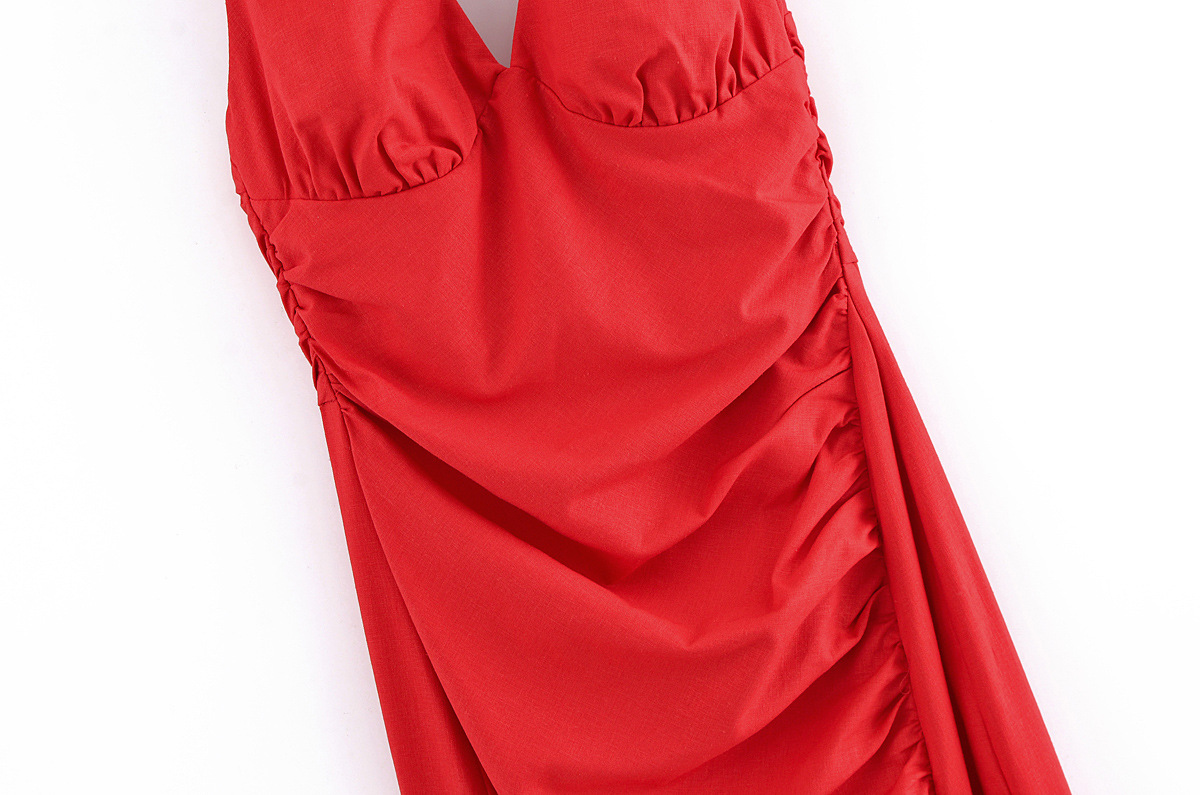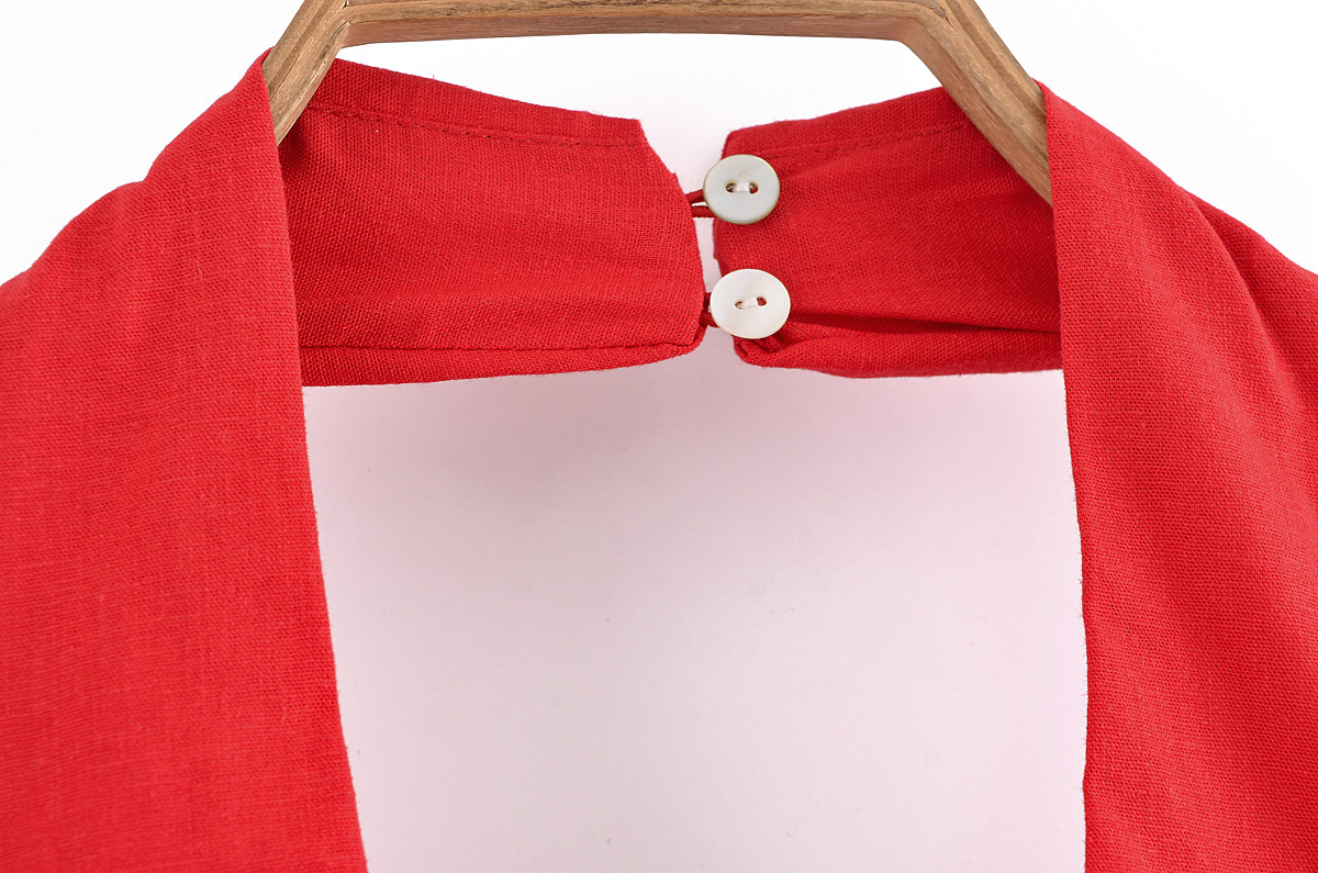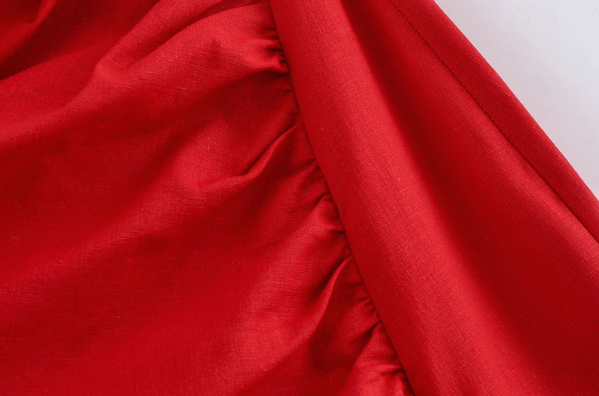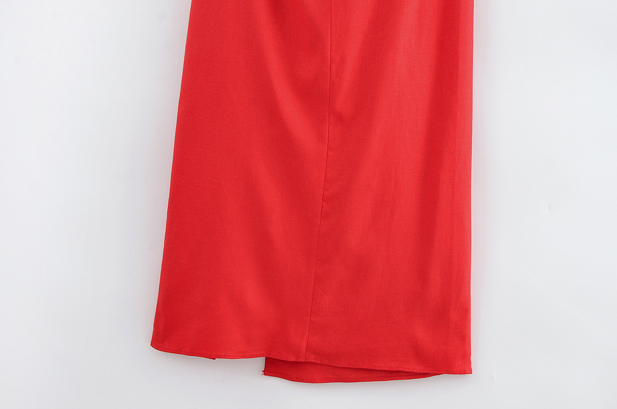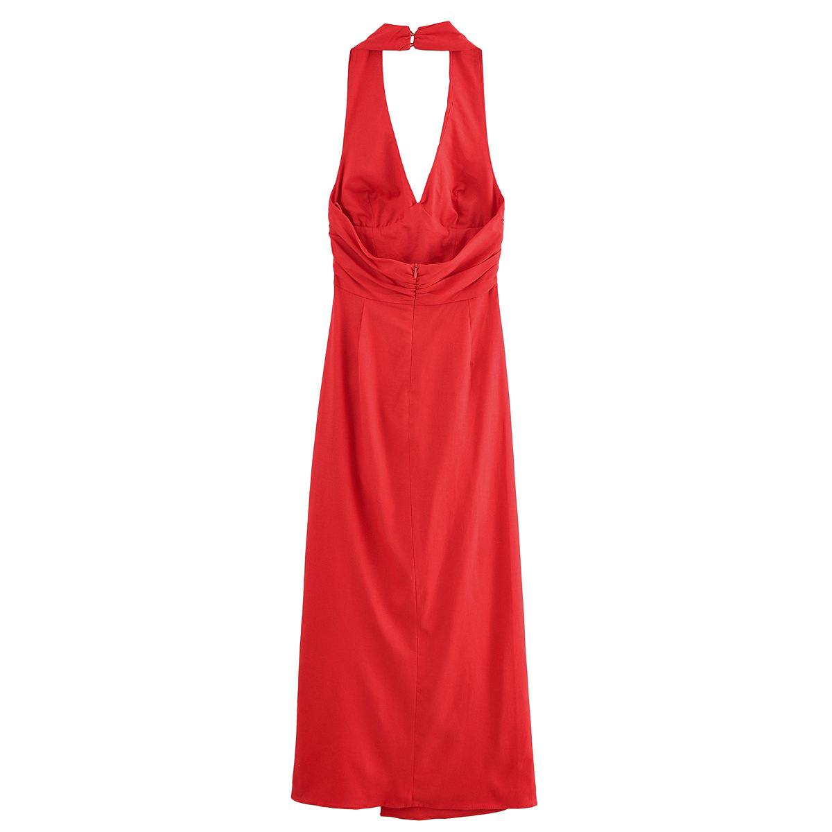 ヨーロッパとアメリカのクロスボーダー婦人服卸売女性リネンプリーツホルターネックミディドレス