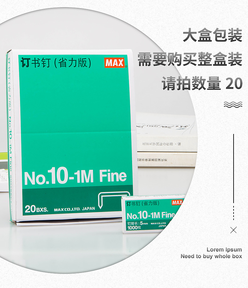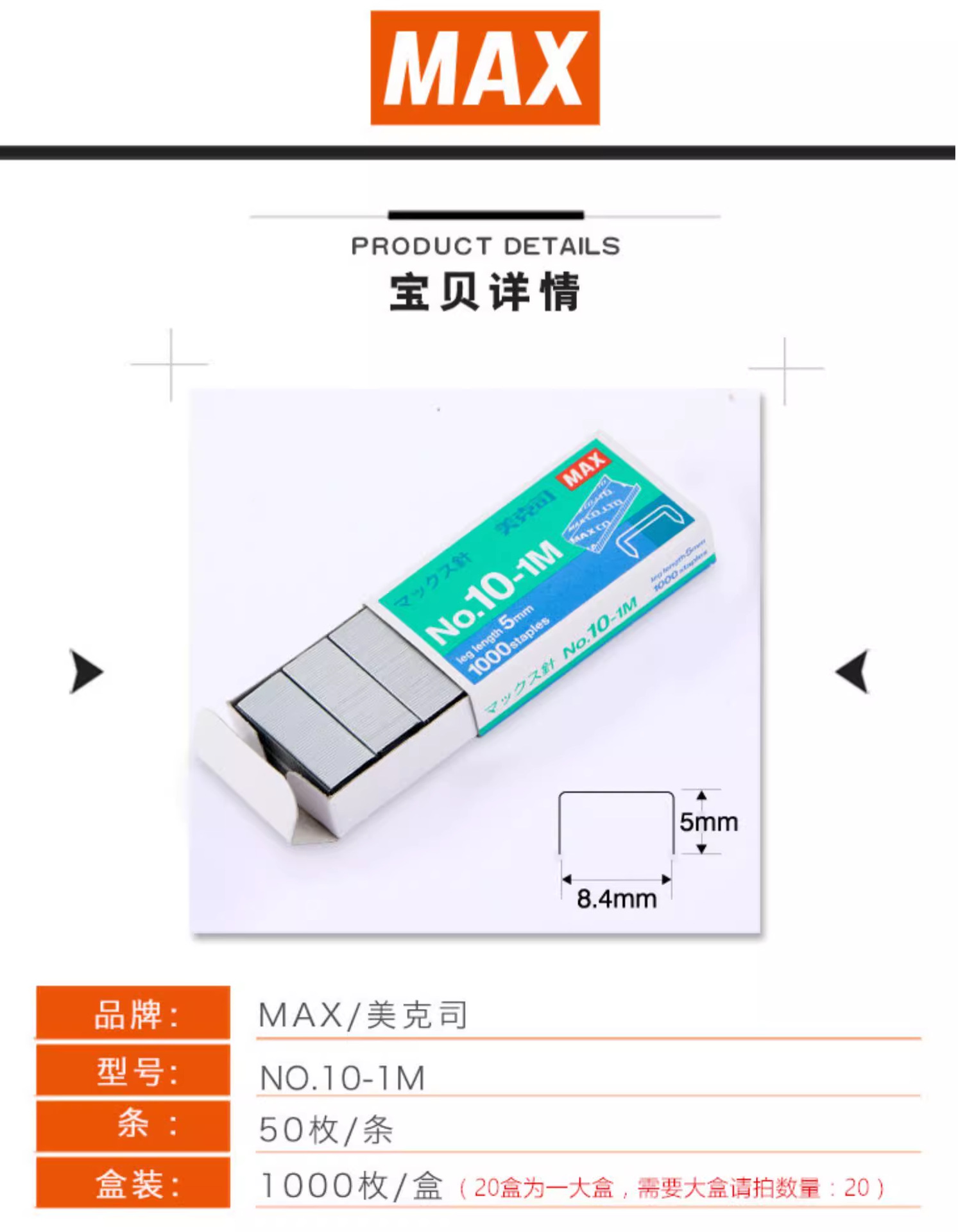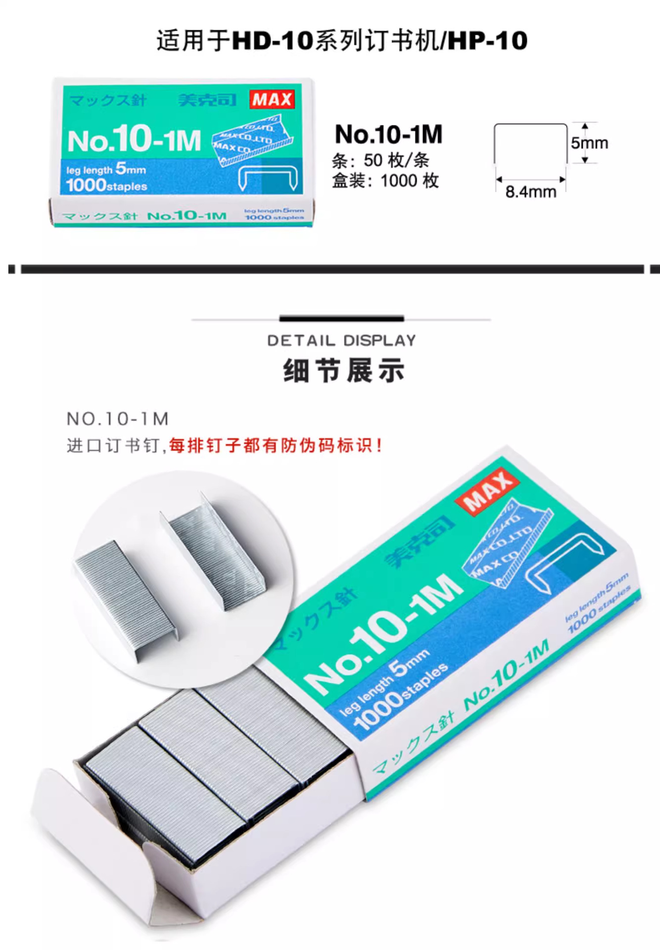 日本製マックスNo.10-1M省力版ホッチキス針1000本/箱10個入り # 万能釘(えんがい釘)