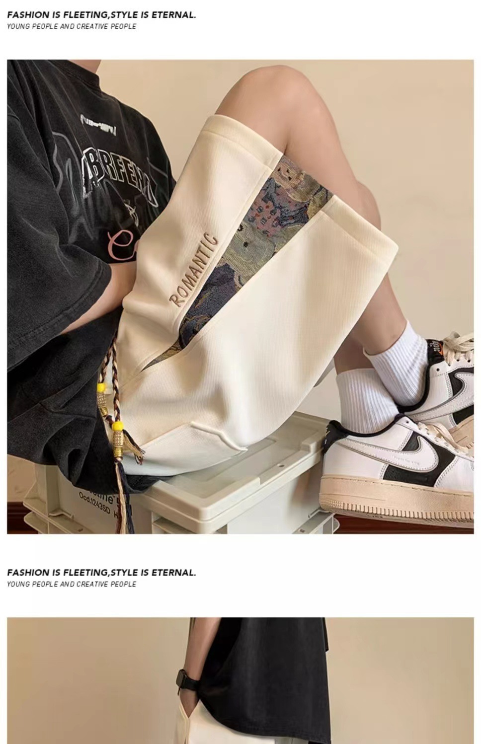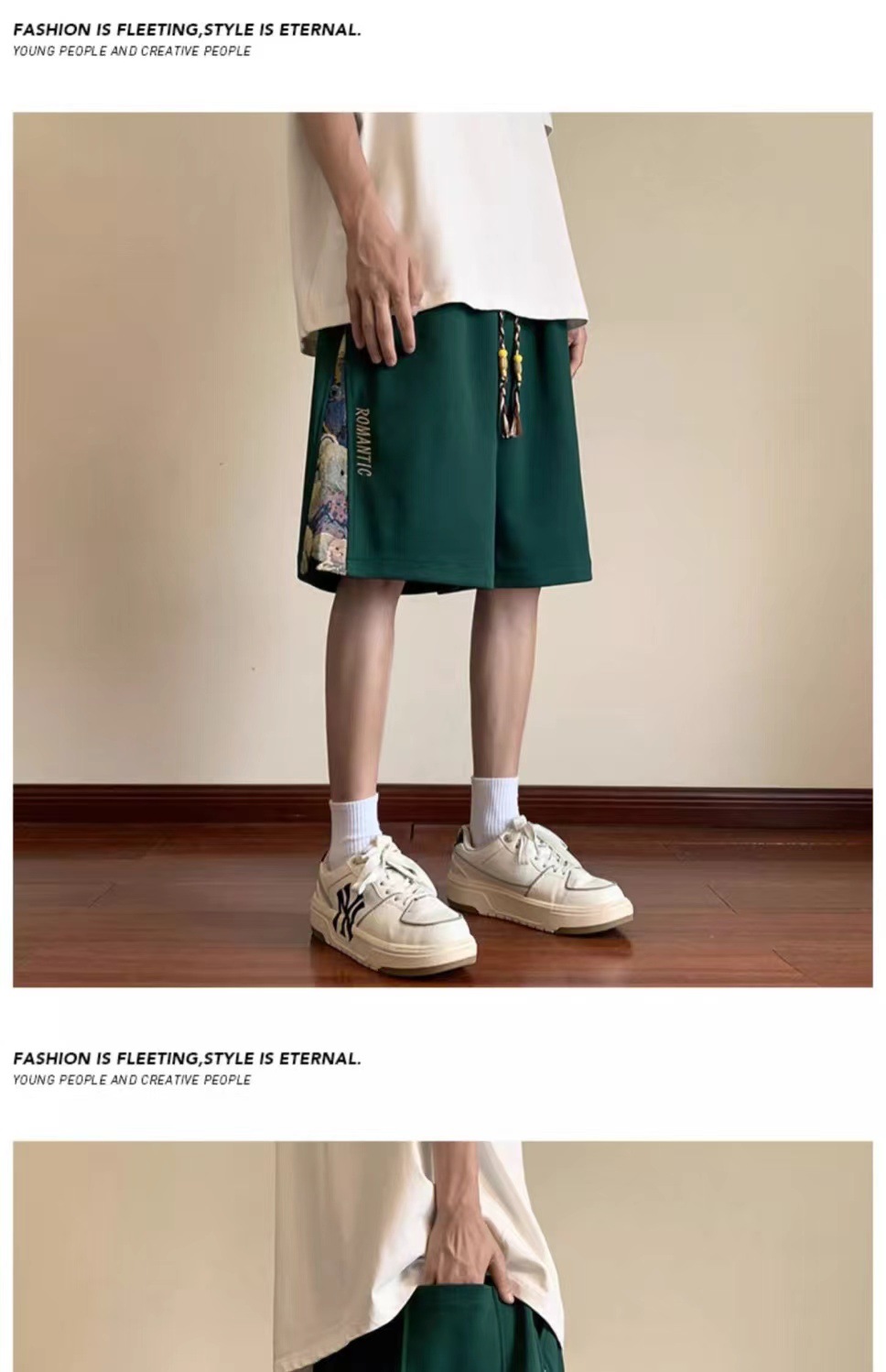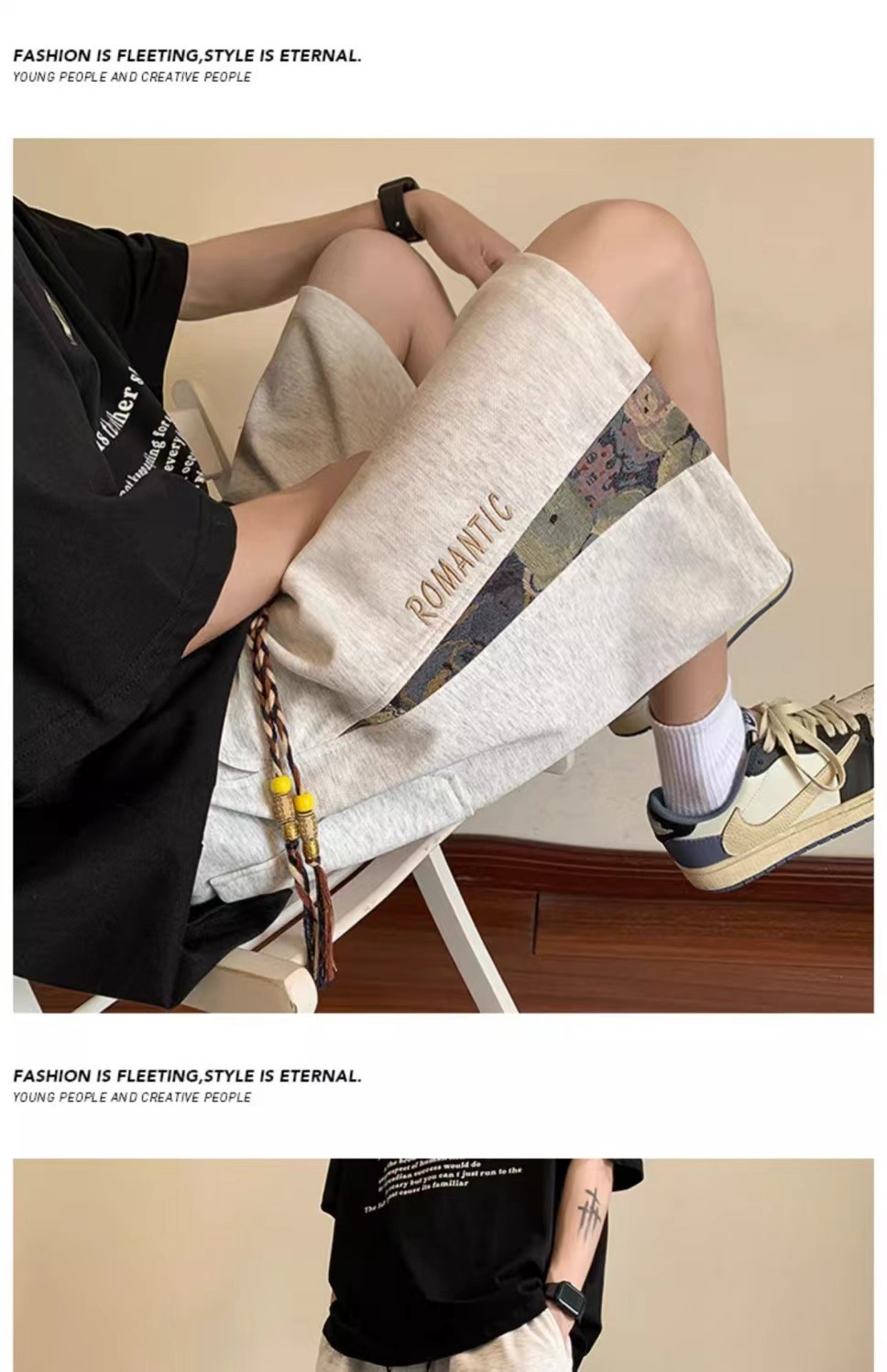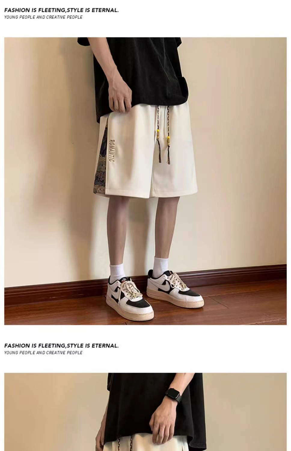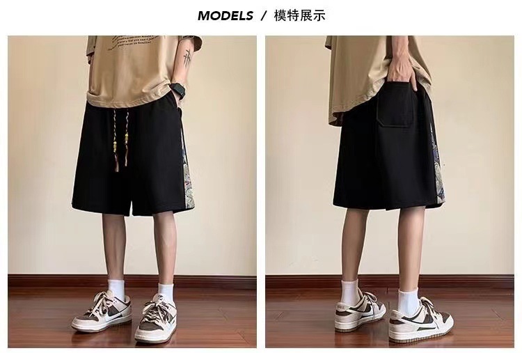 新しいメンズ夏の中国風スポーツショーツ新しい中国風多用途カジュアルパンツ国民的トレンドクマ刺繍五分パンツ