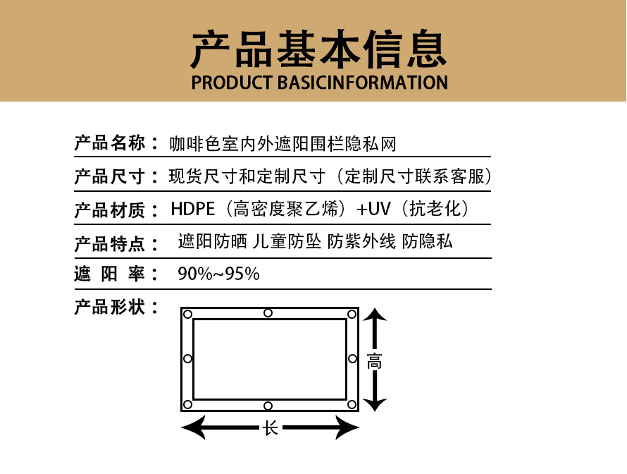 コーヒー色の HDPE アンチエイジング暗号化された厚みのある屋外茶色のバルコニー中庭フェンスプライバシー日焼け止めネット