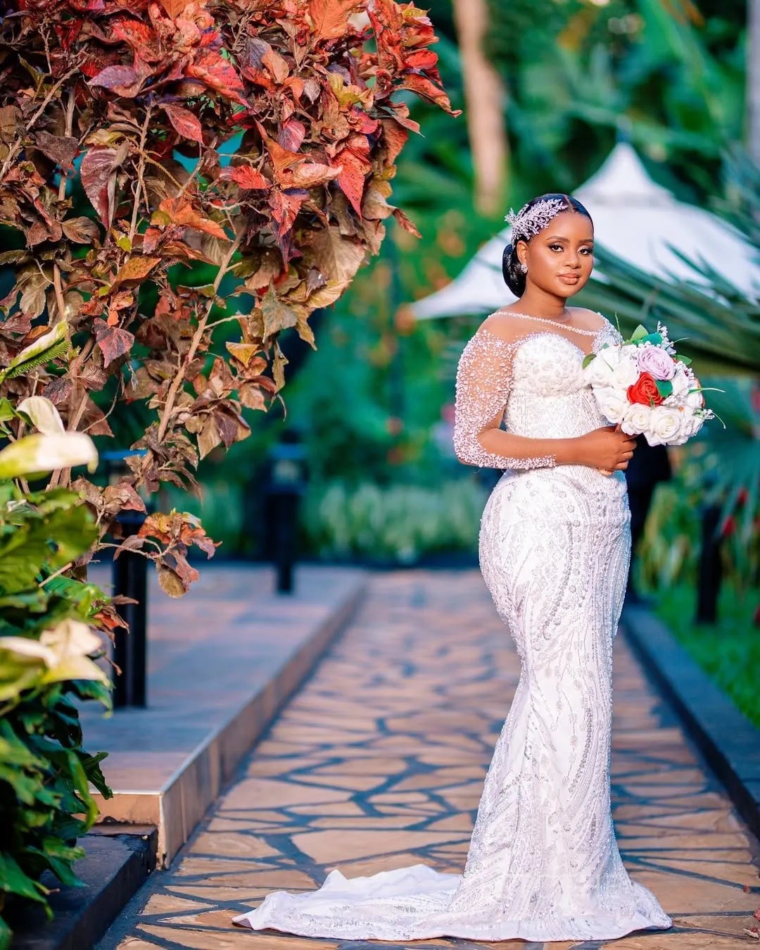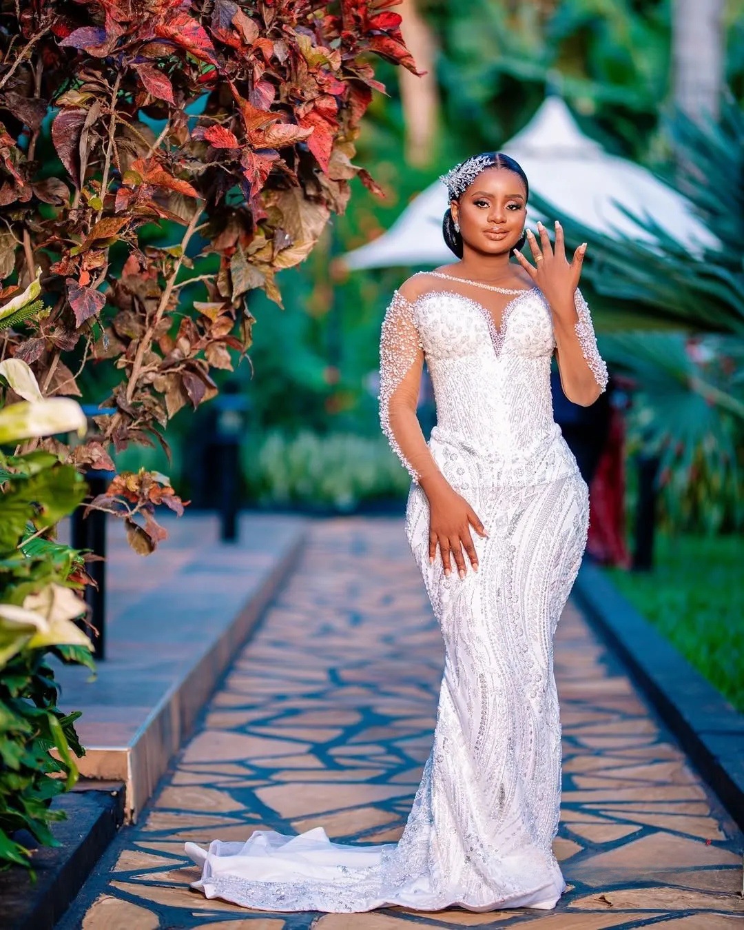 フィッシュテールウェディングドレス アフリカの花嫁 ワンショルダーレース 2025年新作 クロスボーダー Amazon 長袖ドレス トレーン付き