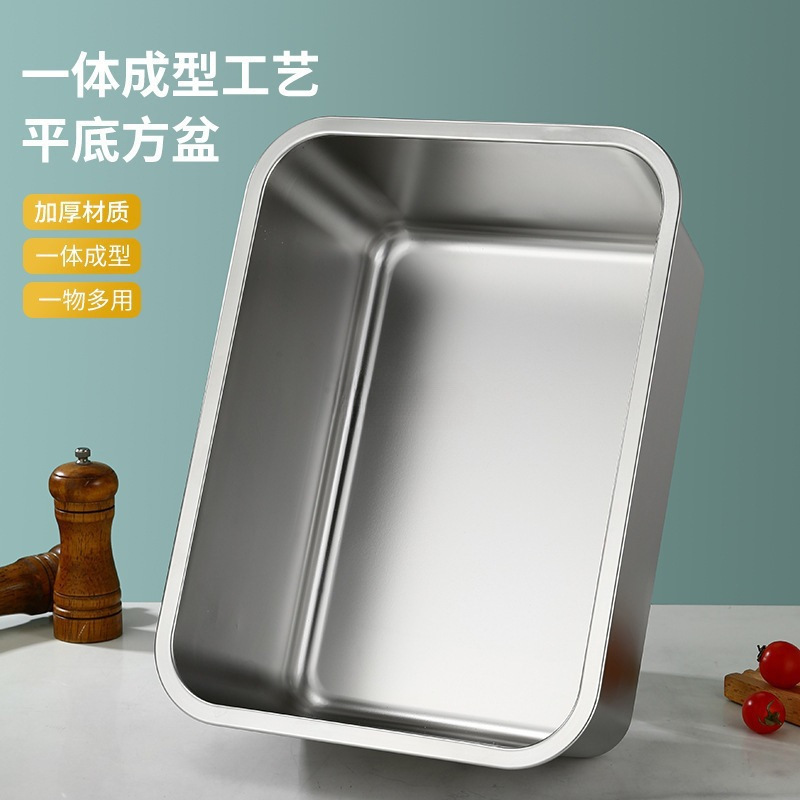 304 ステンレス鋼の正方形の洗面器、長方形の平底トレイ、ビュッフェのサービング洗面器、カバー付きの食堂のサービング洗面器、冷凍洗面器