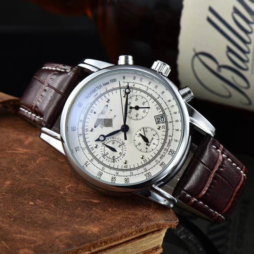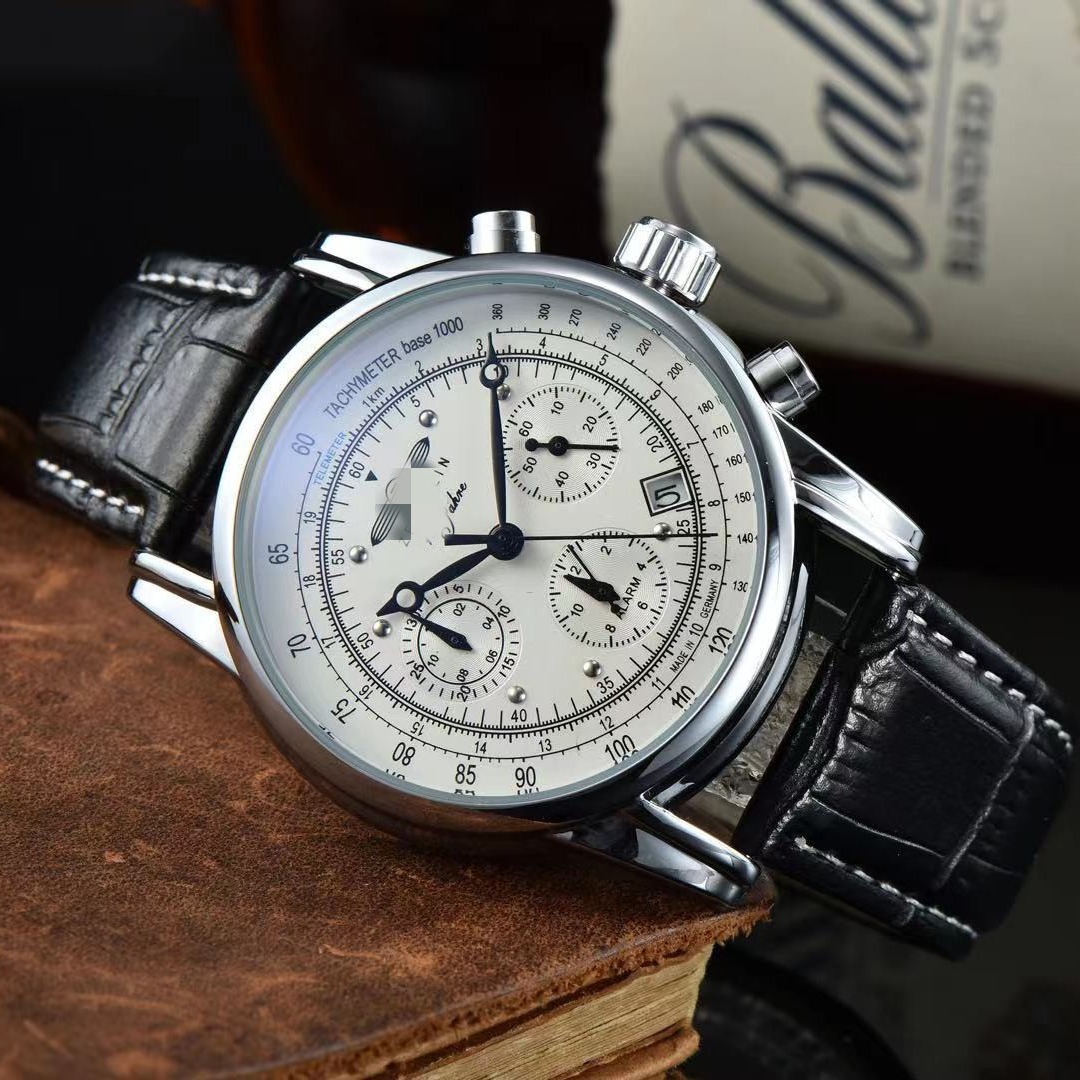 クロスボーダー高級ブランド多機能クロノグラフクォーツ腕時計防水カレンダー付きメンズ腕時計本革ストラップ工場直販