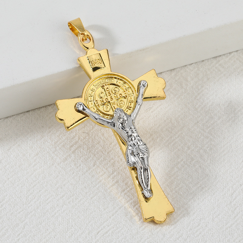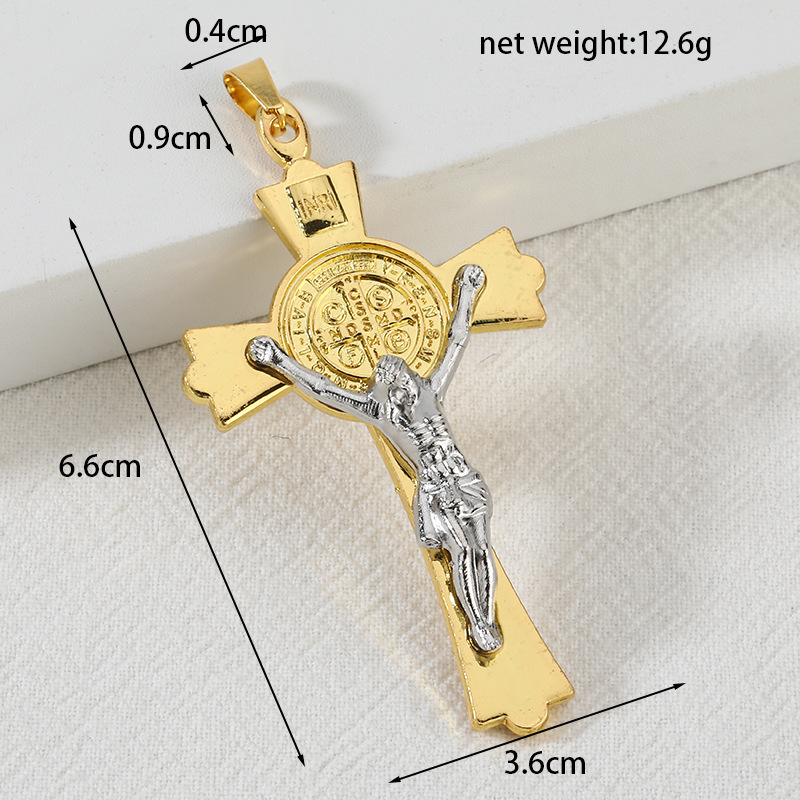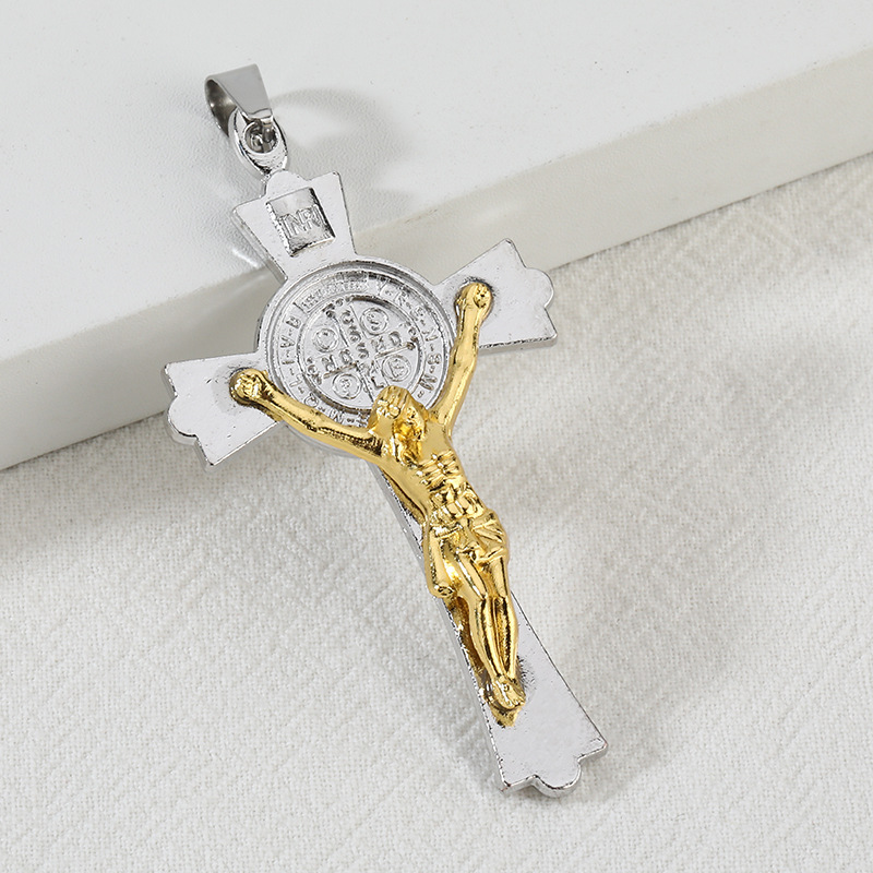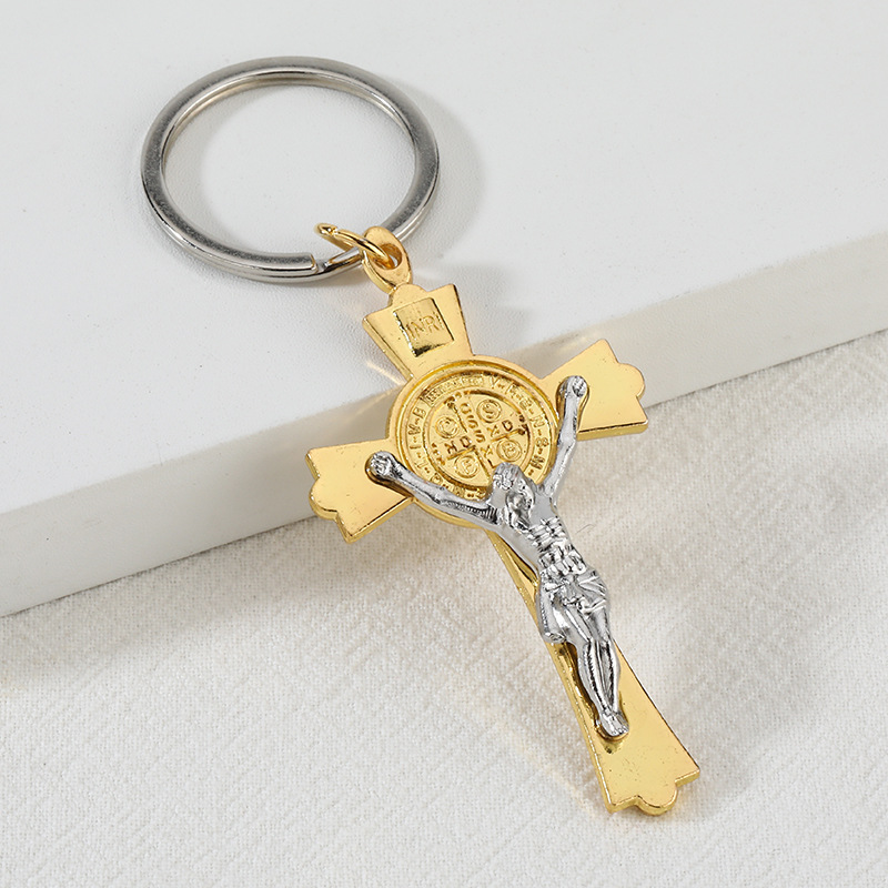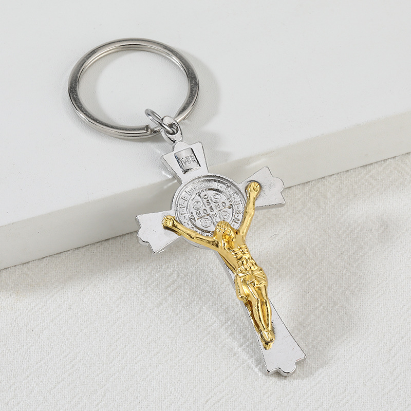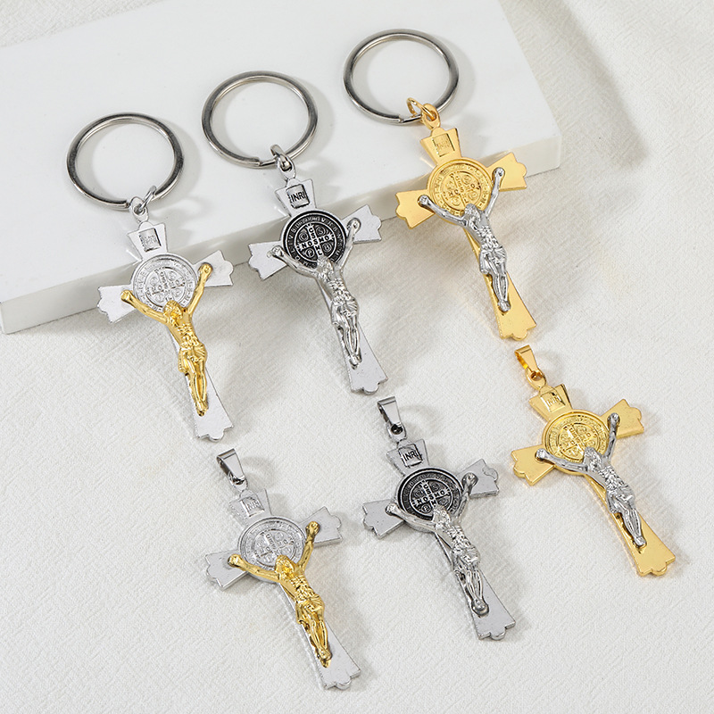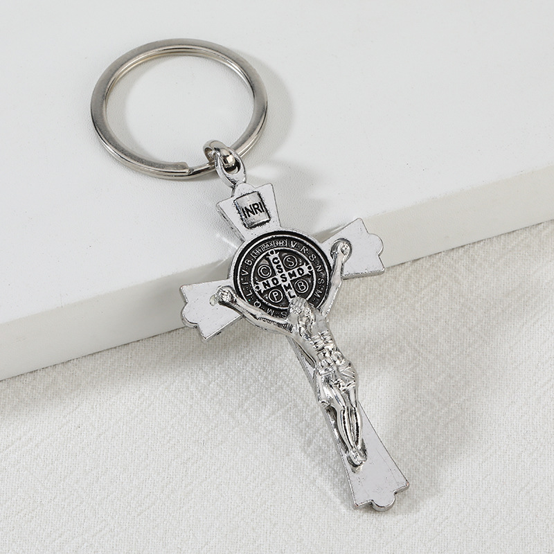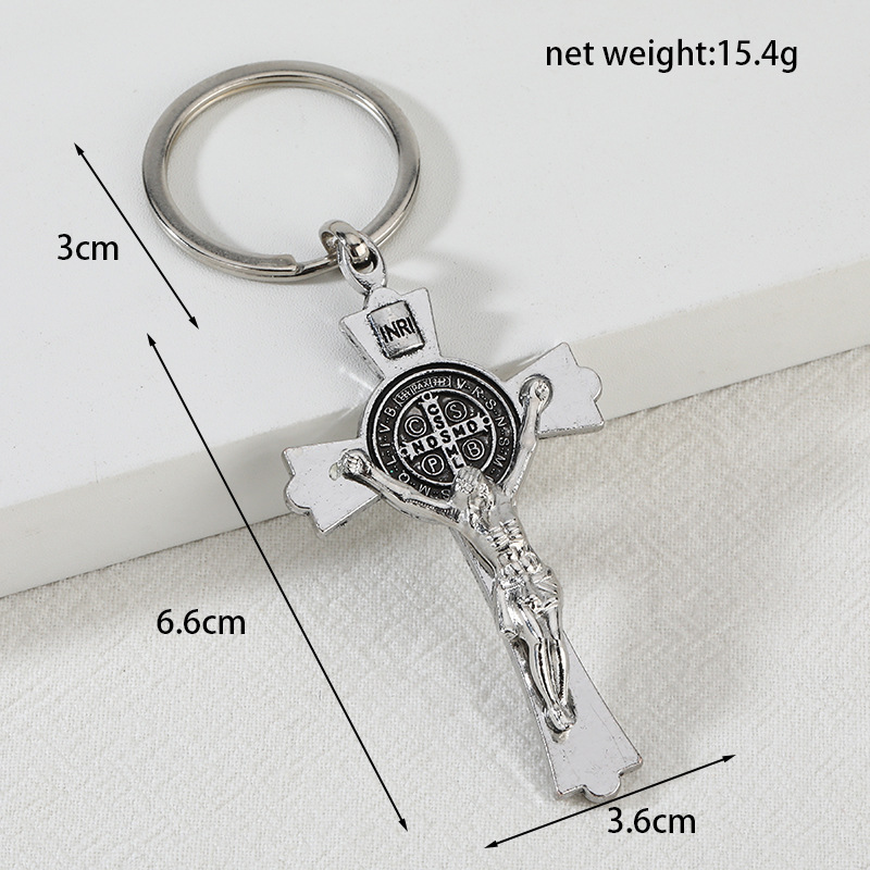 国境を越えた新型聖ベネディクト十字架金属男女キーホルダーDIYストラップ