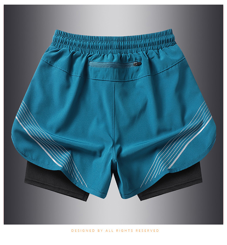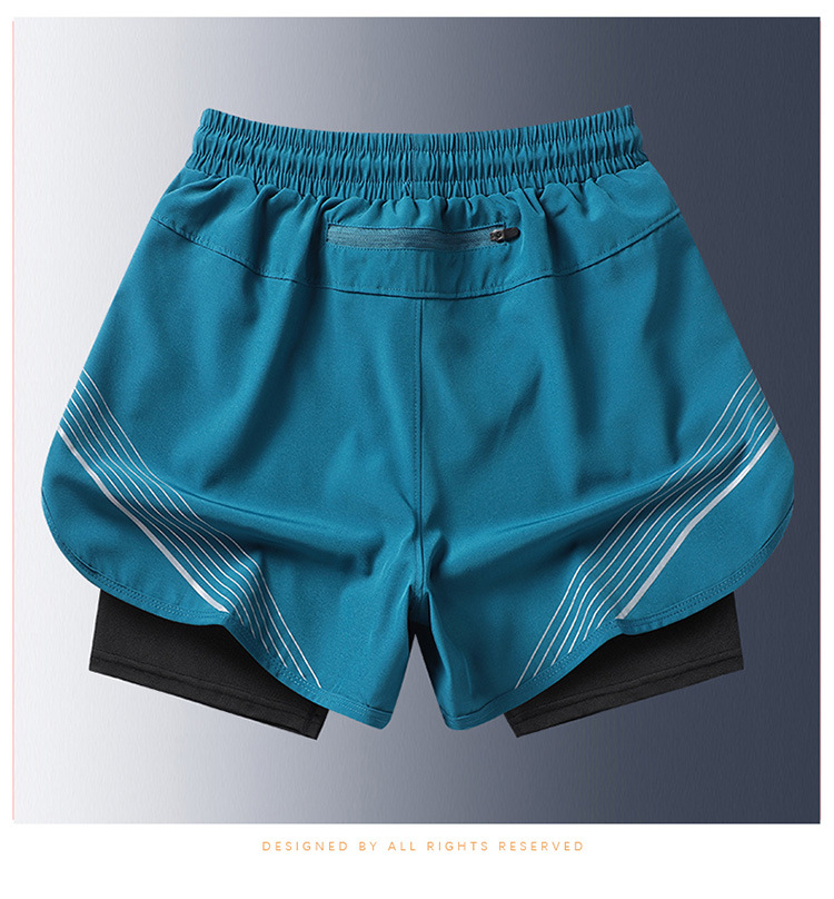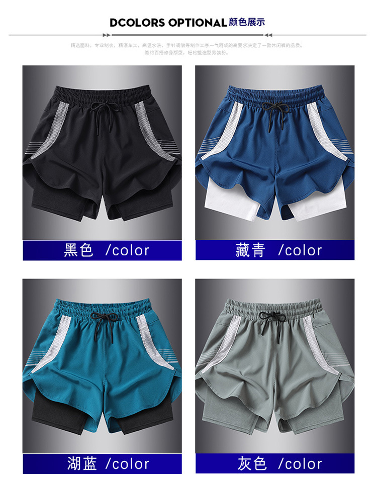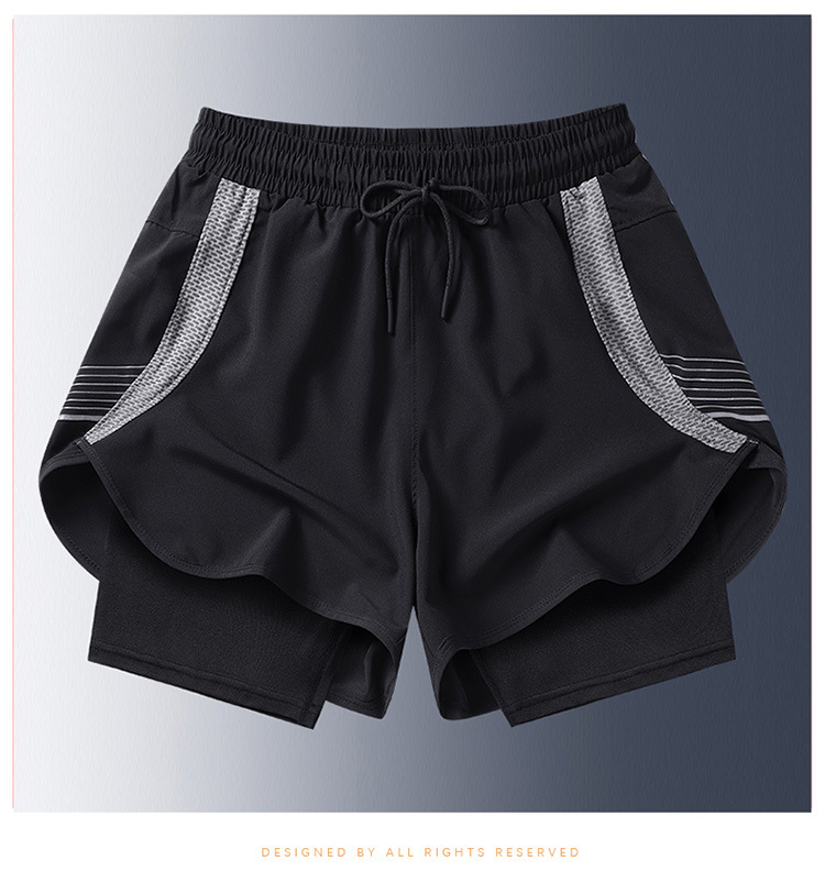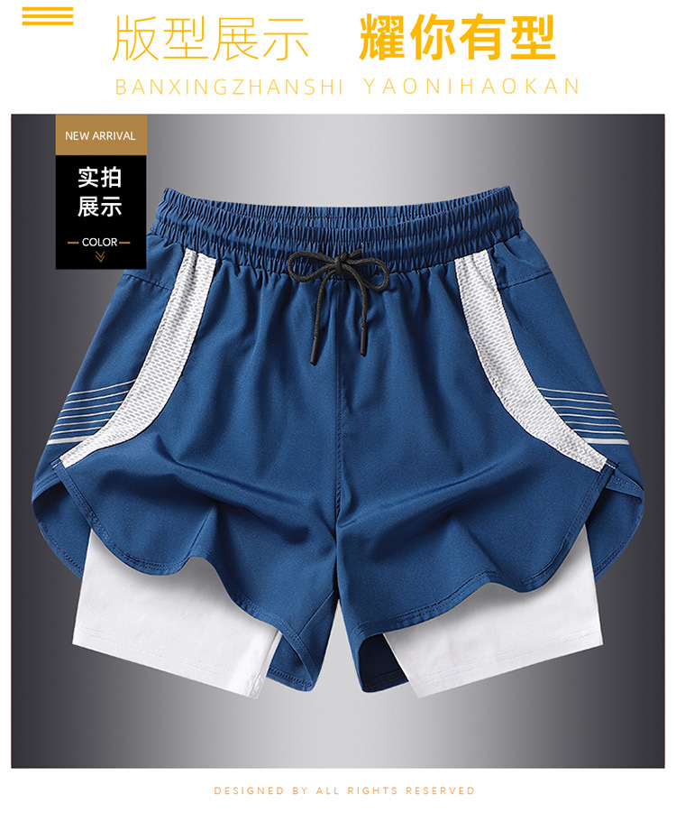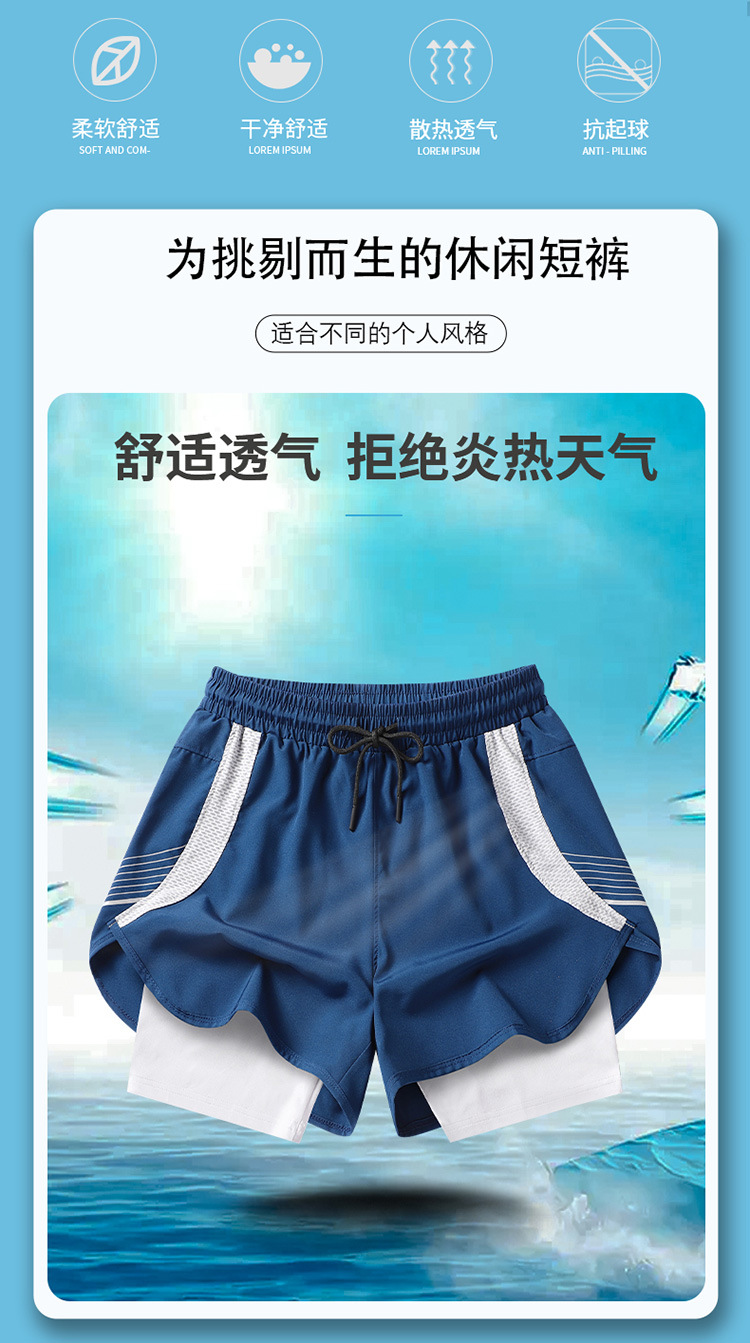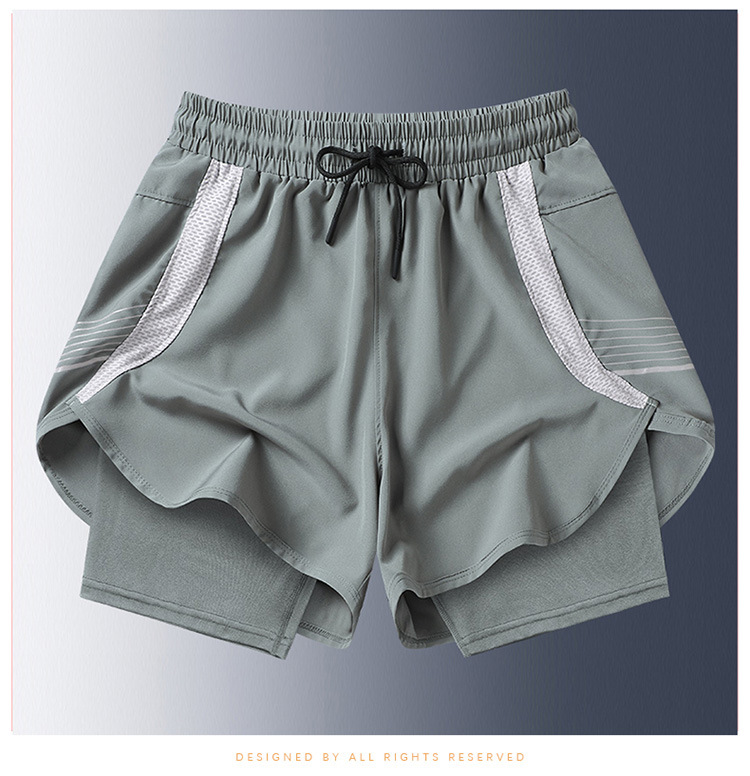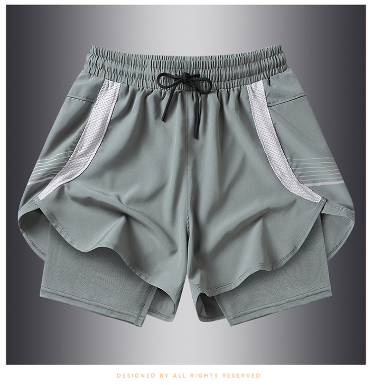 夏の新しいメンズ韓国スタイルの軽量偽ツーピースアイスシルク日焼け止め速乾性スポーツショーツトレンディなインターネットセレブと同じスタイルのビーチパンツ