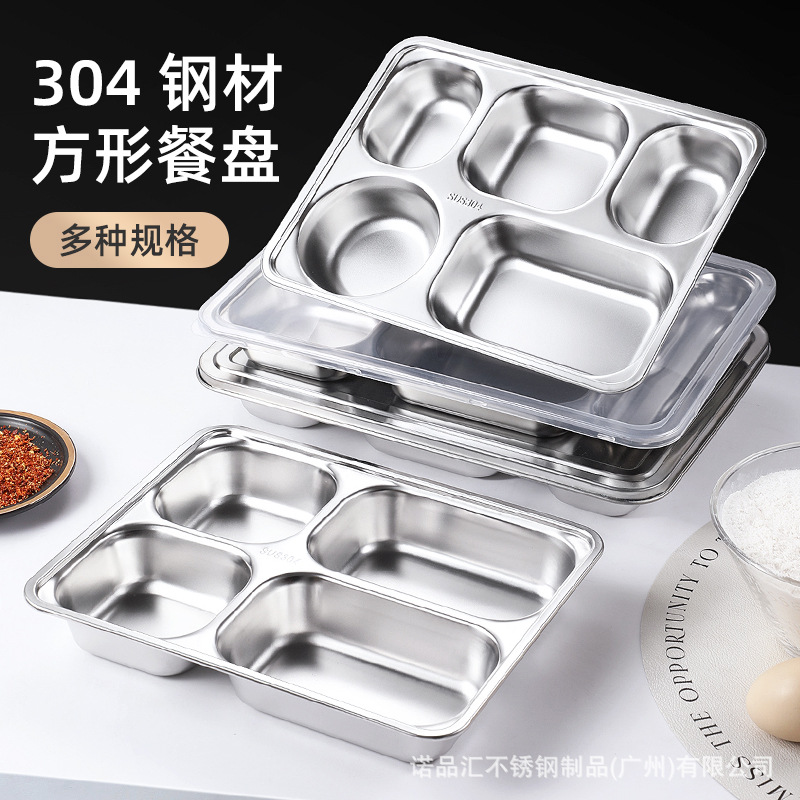 304 ステンレス鋼の蓋付きディナープレート、商業家庭用大人の食堂ファーストフードプレート、学生と子供用の分割食器セット