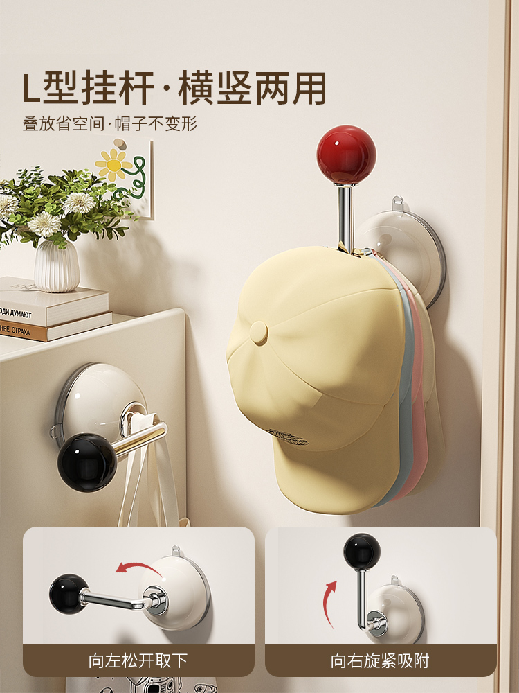✅ 帽子収納吸盤フック、穴あけ不要、ドア裏、壁、クローゼット壁掛け、多機能、野球帽、ひさし帽