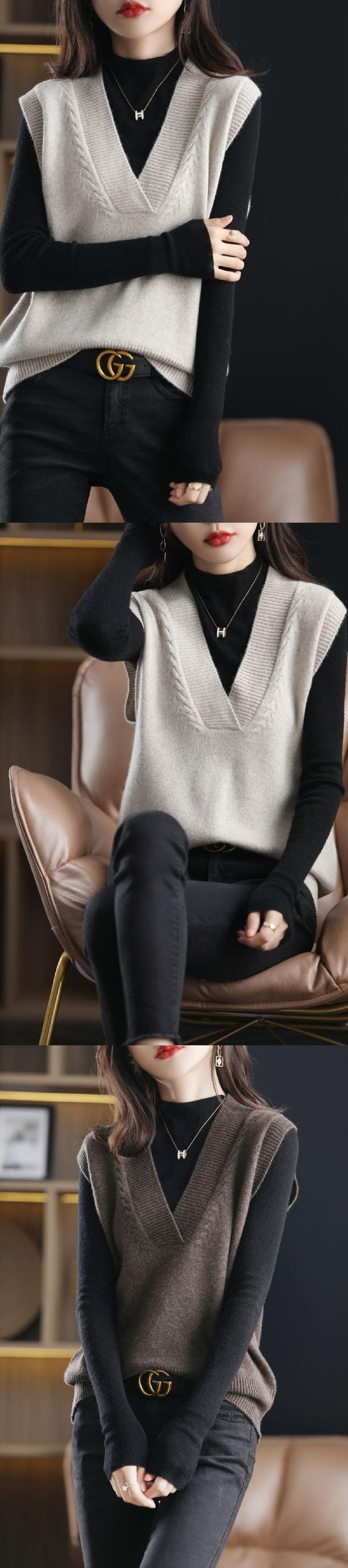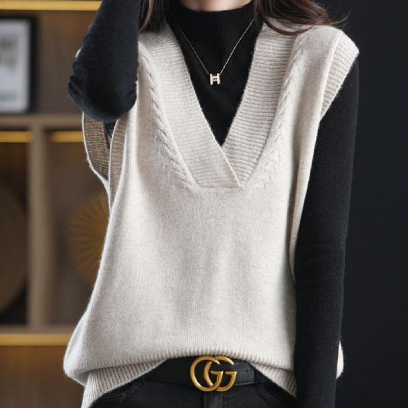 柔らかく繊細なベストニットレディース2026秋冬Vネックレトロノースリーブセーターベスト内外着用